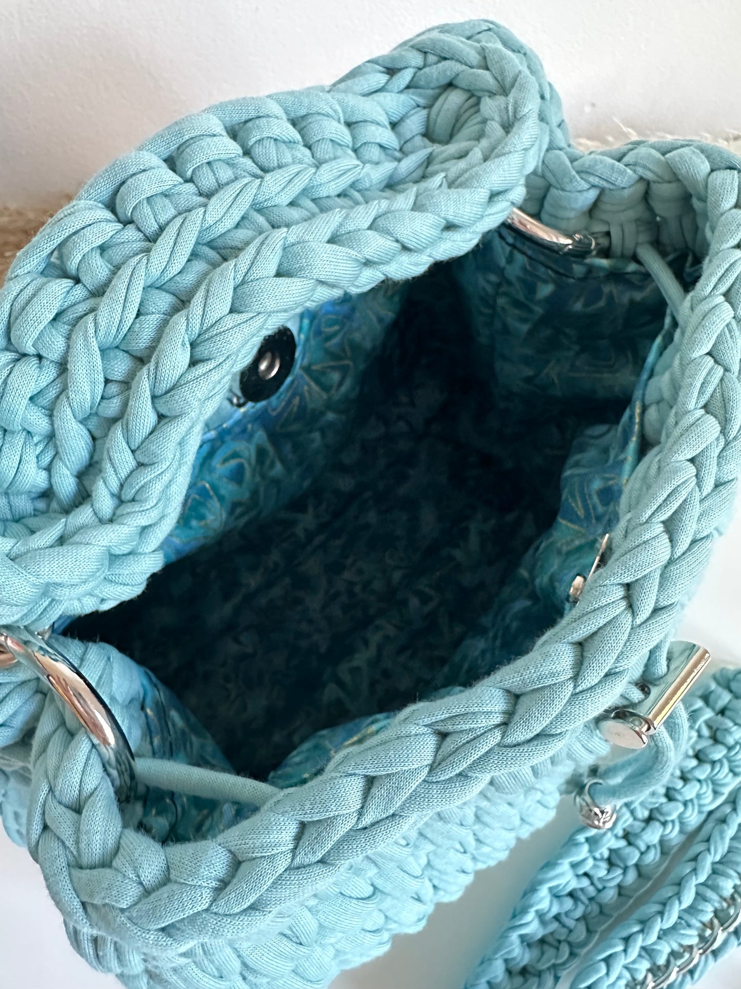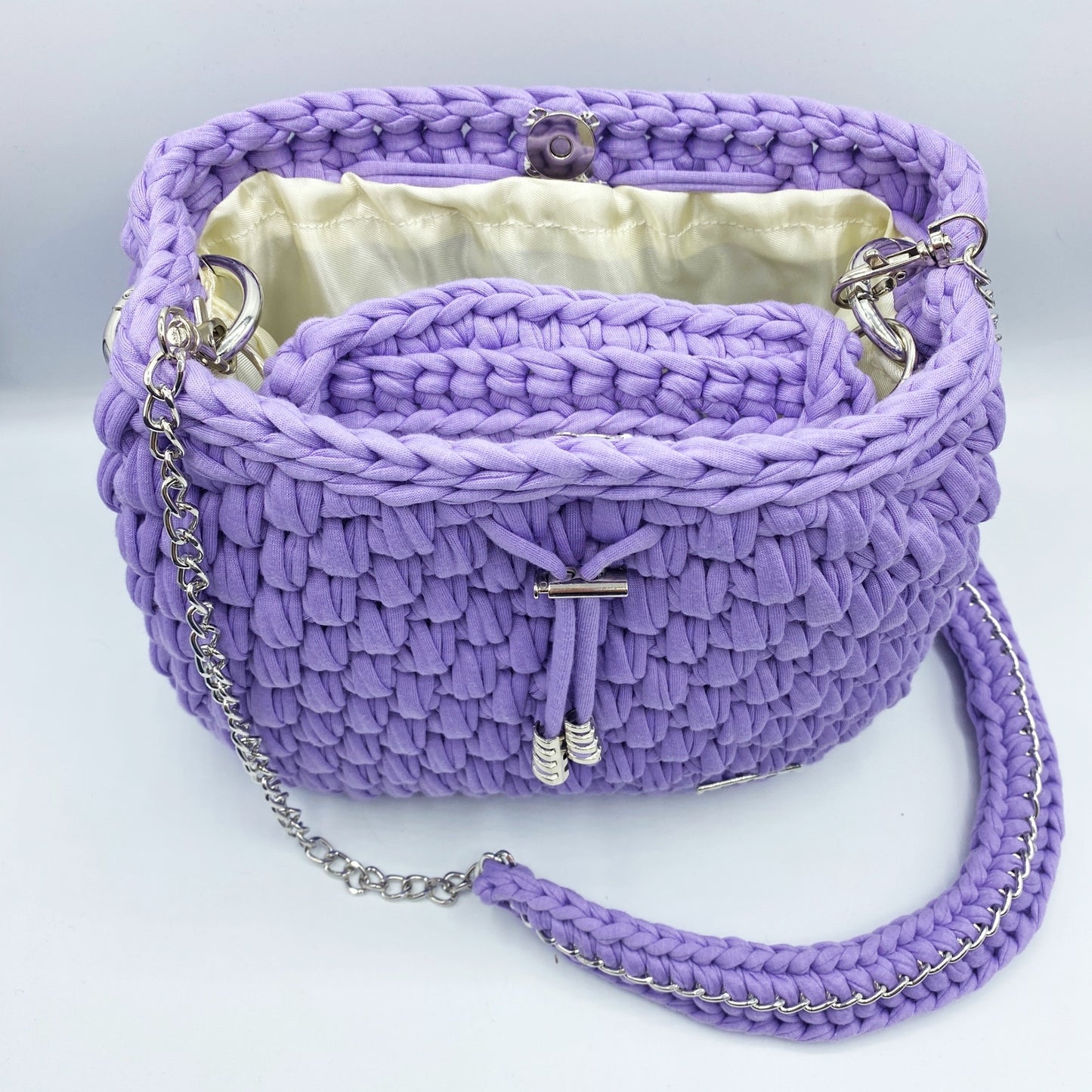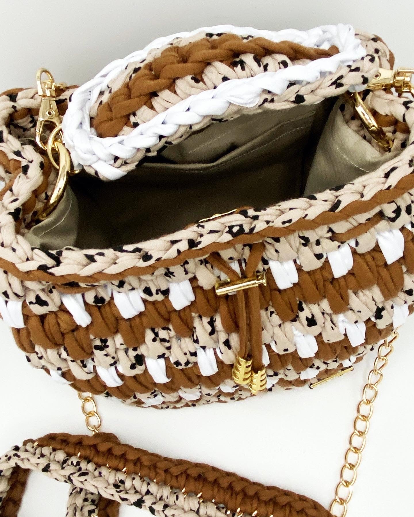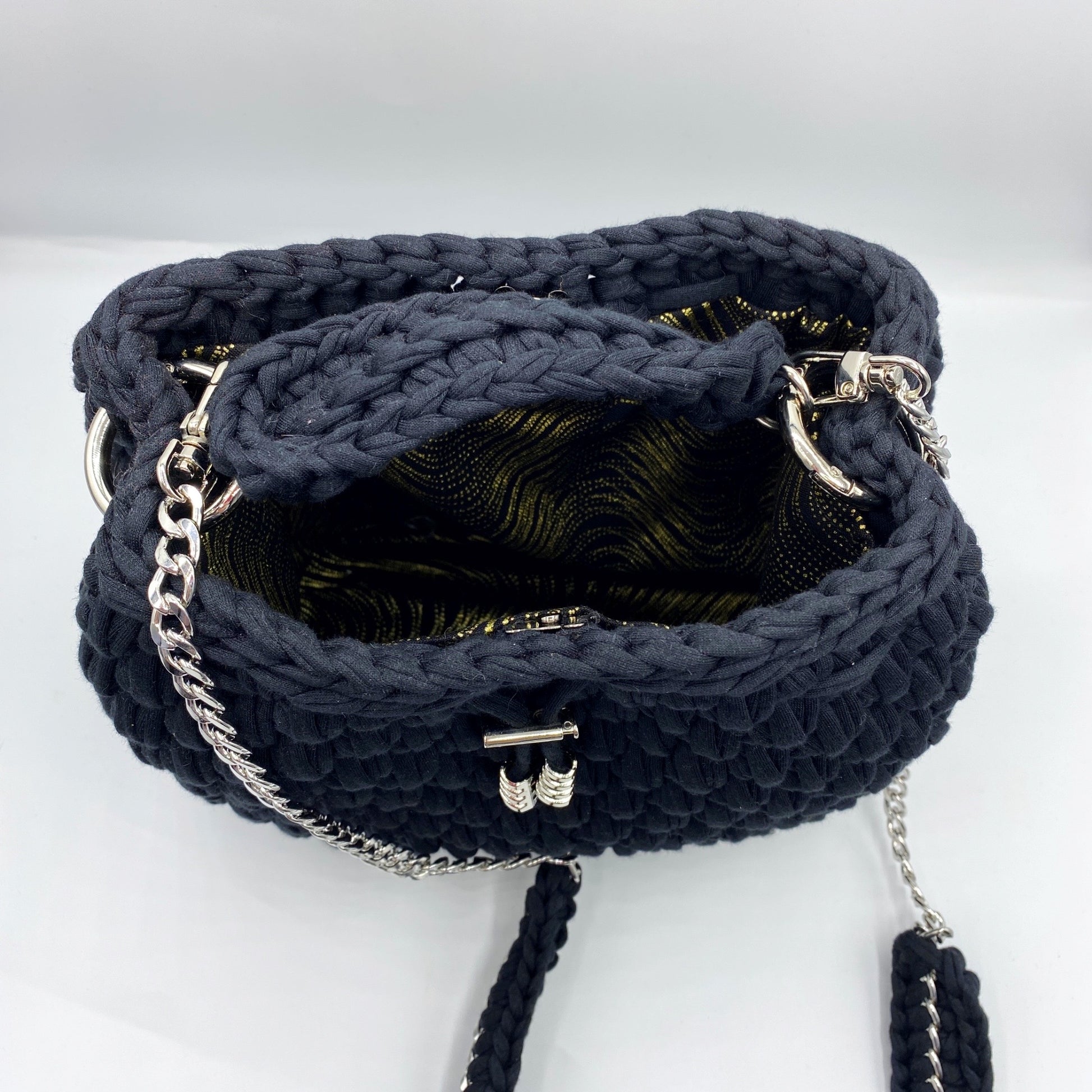 The interior of the bag is lined with elegant fabric, providing durability and protection.