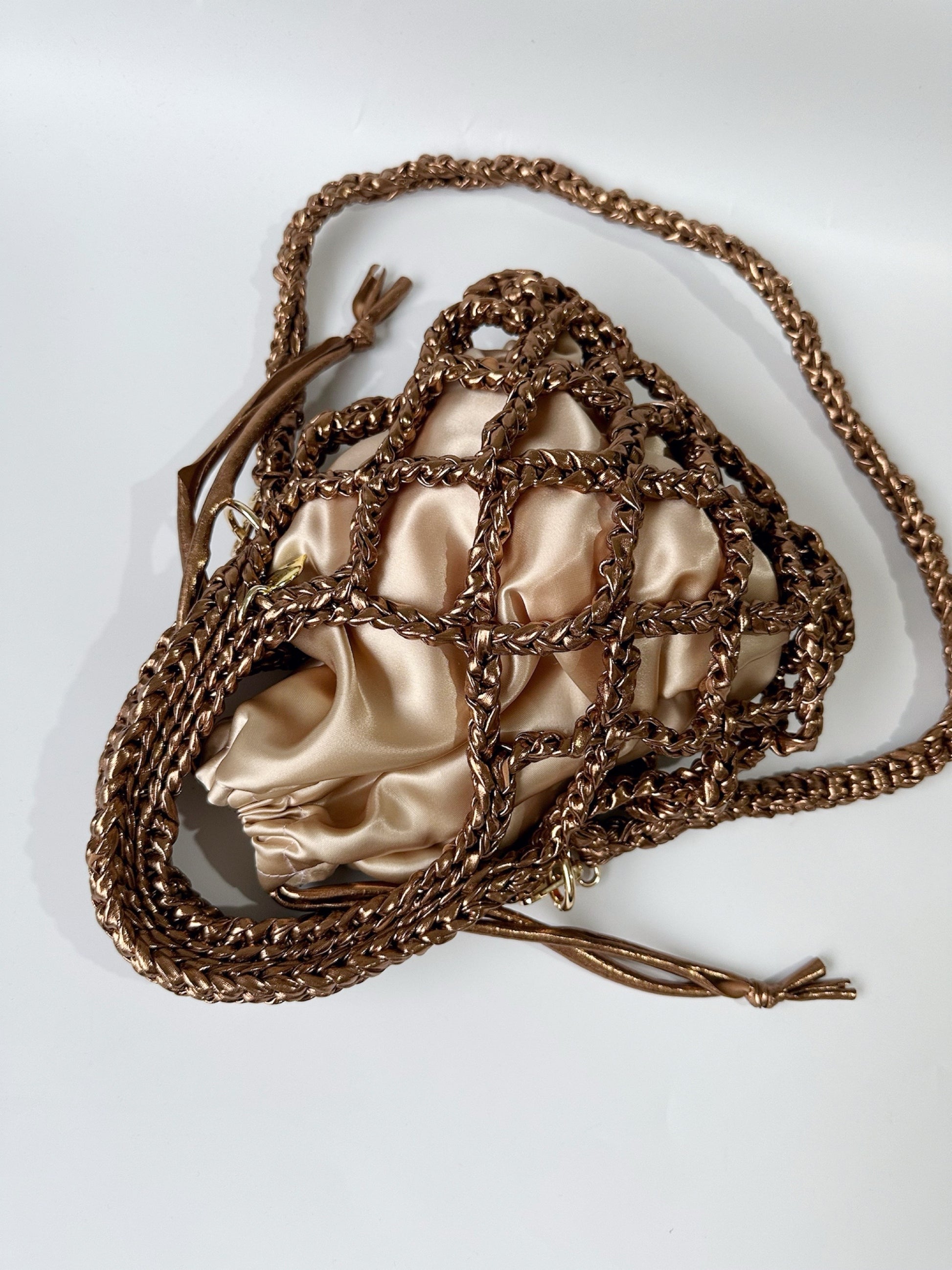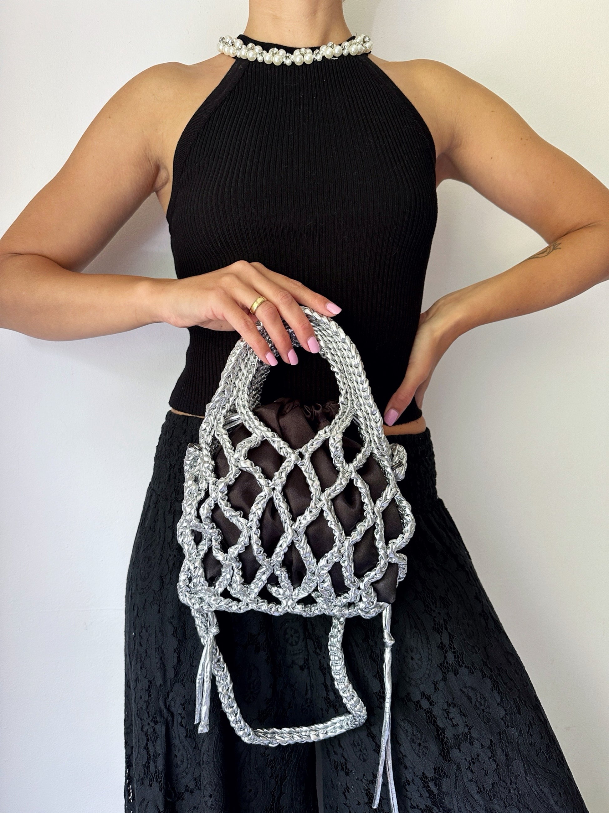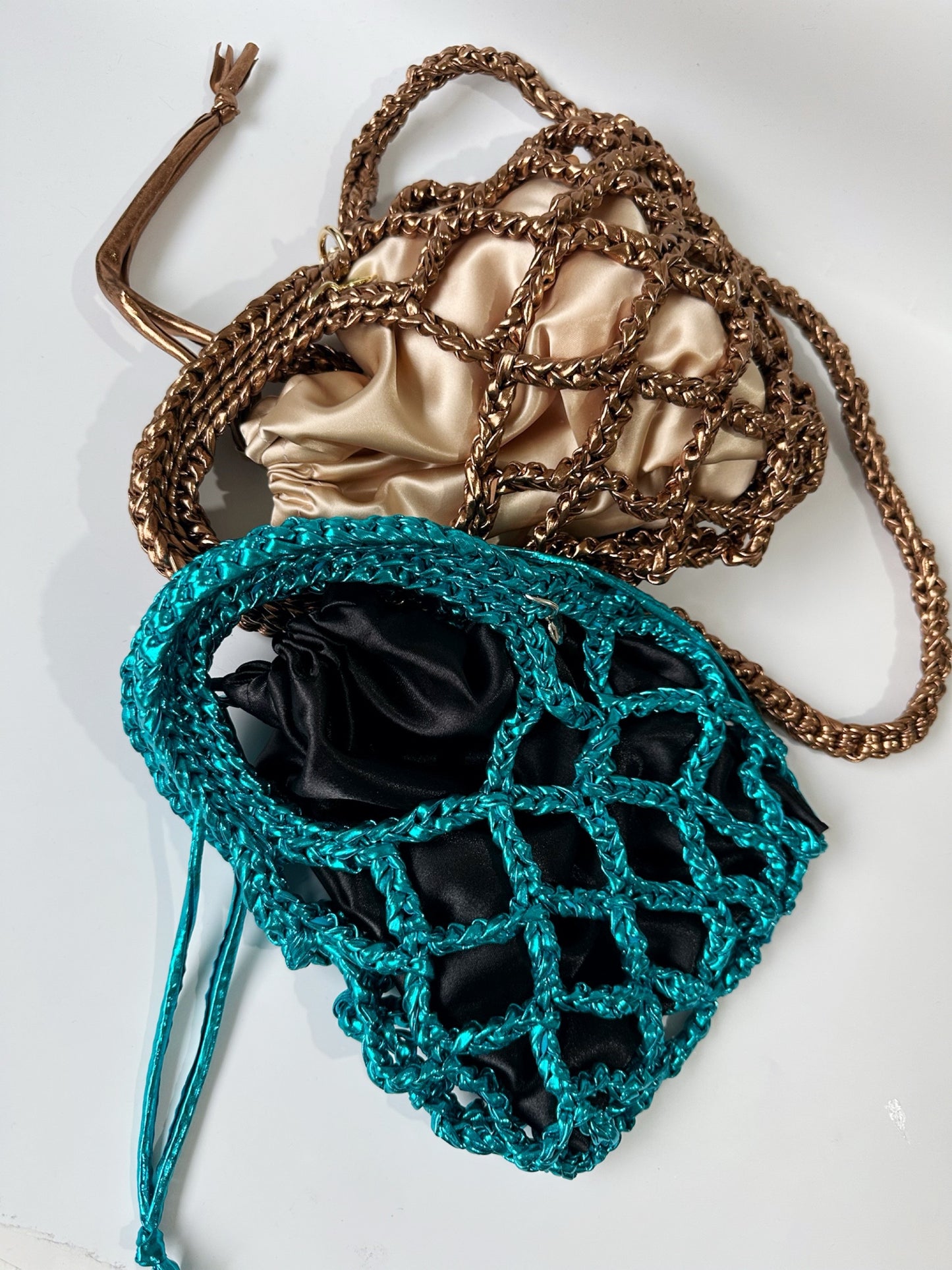 This handcrafted handbag, made from beautiful shimmering material, will dazzle anyone who sees it. It's perfect for women who love fashion and unique accessories.