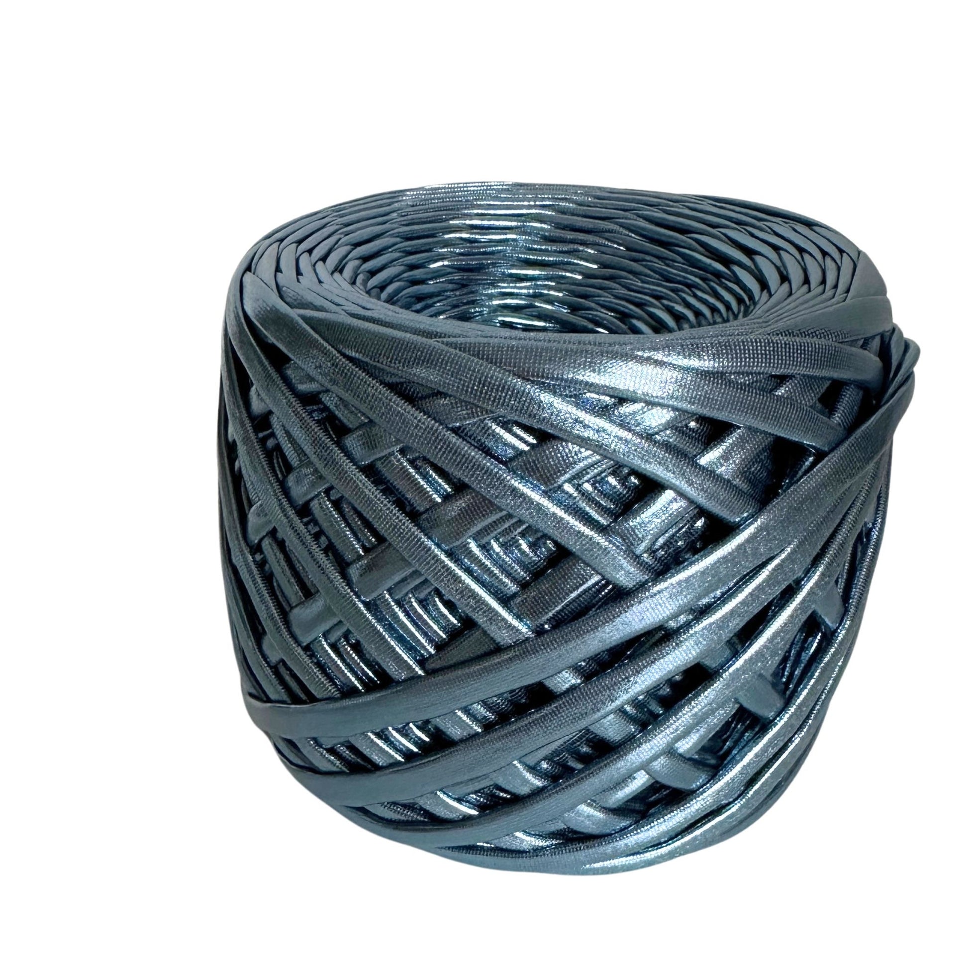 Metallic tshirt yarn is a quality yarn, made of 100% polyester with metal spraying. Without knots, stitches, and differences in width. LOOK LETAHER YARN