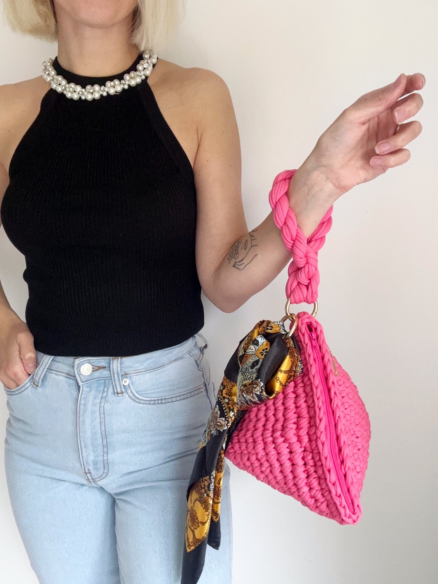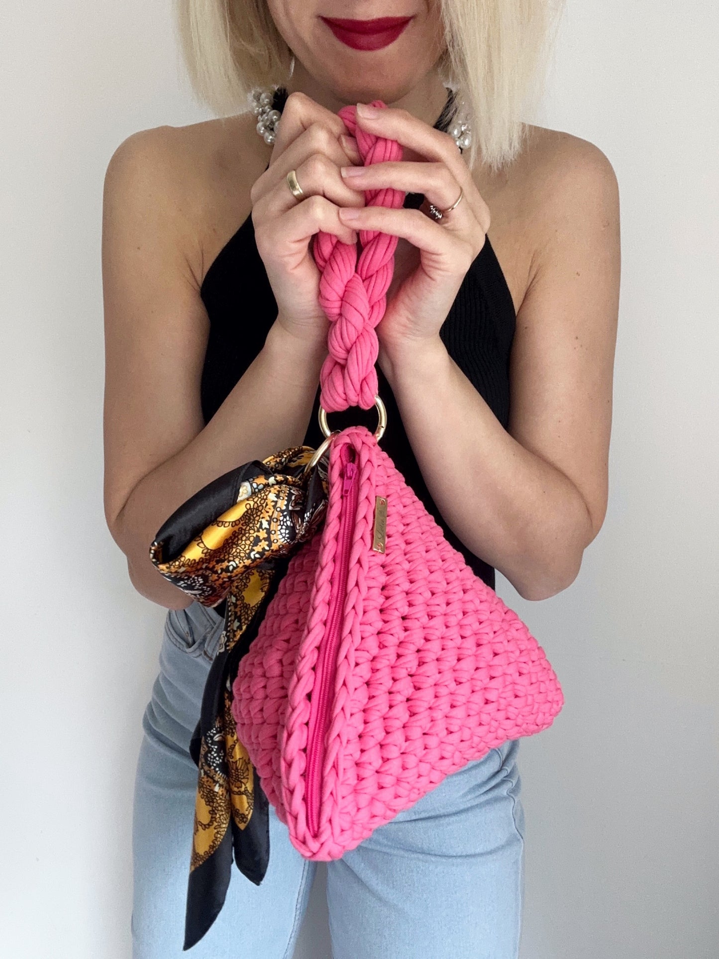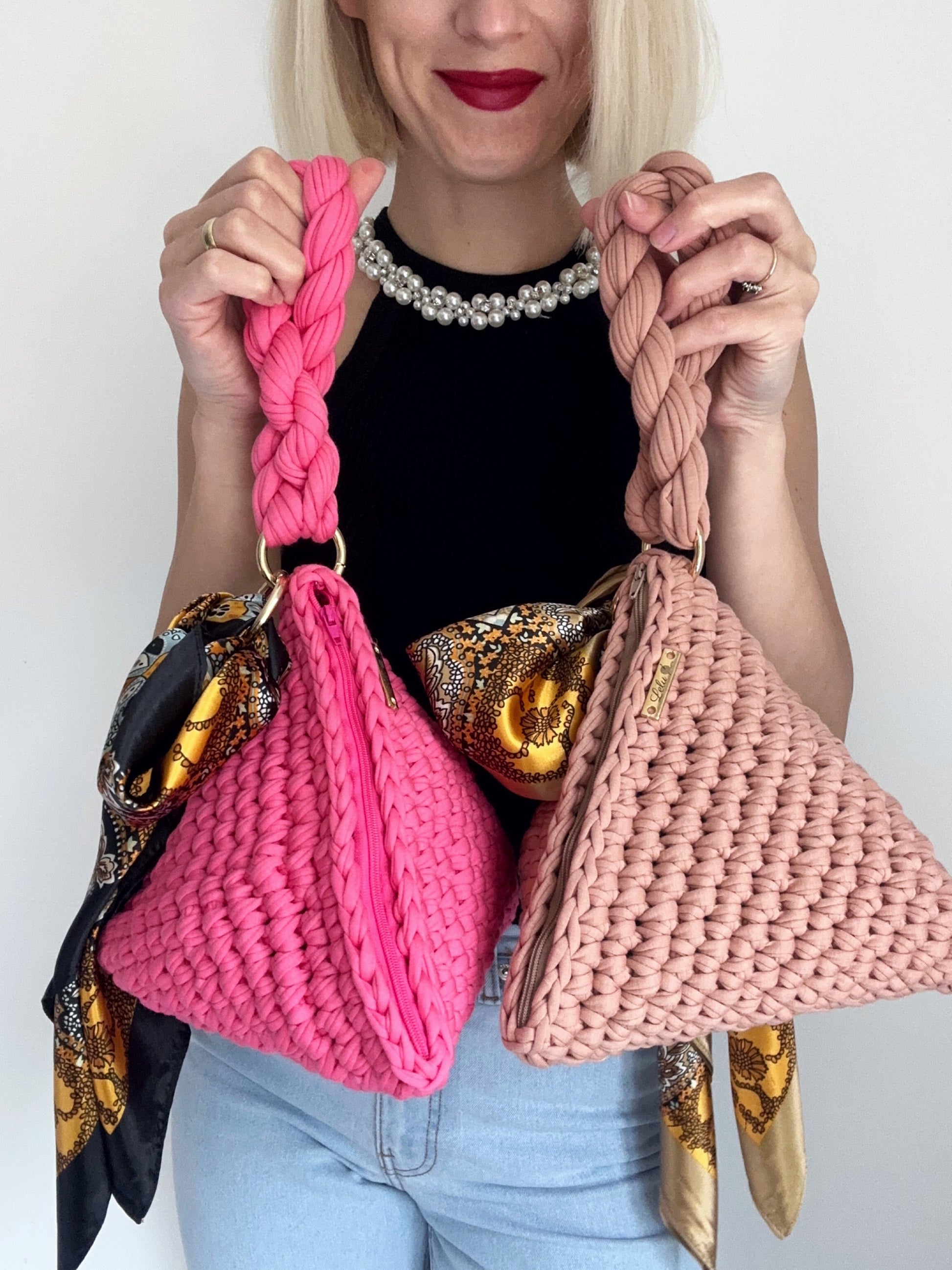 Discover the uniqueness and style of our triangle-shaped bag, meticulously handcrafted with passion and attention to detail. This exceptional bag, made from crochet, combines modern design with classic craftsmanship. Its geometric shape catches the eye and adds character to any outfit.