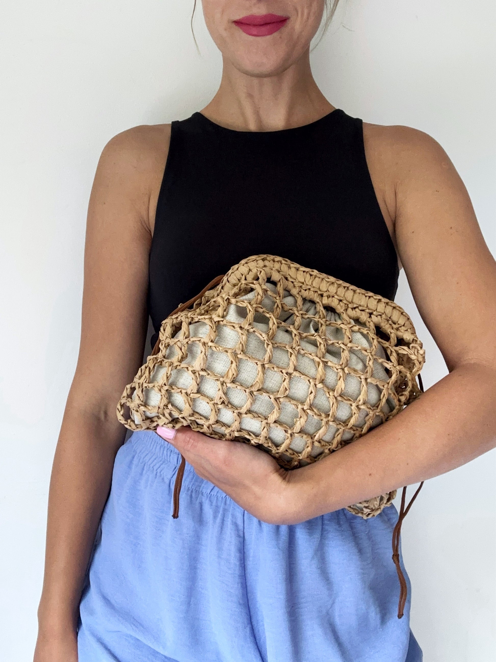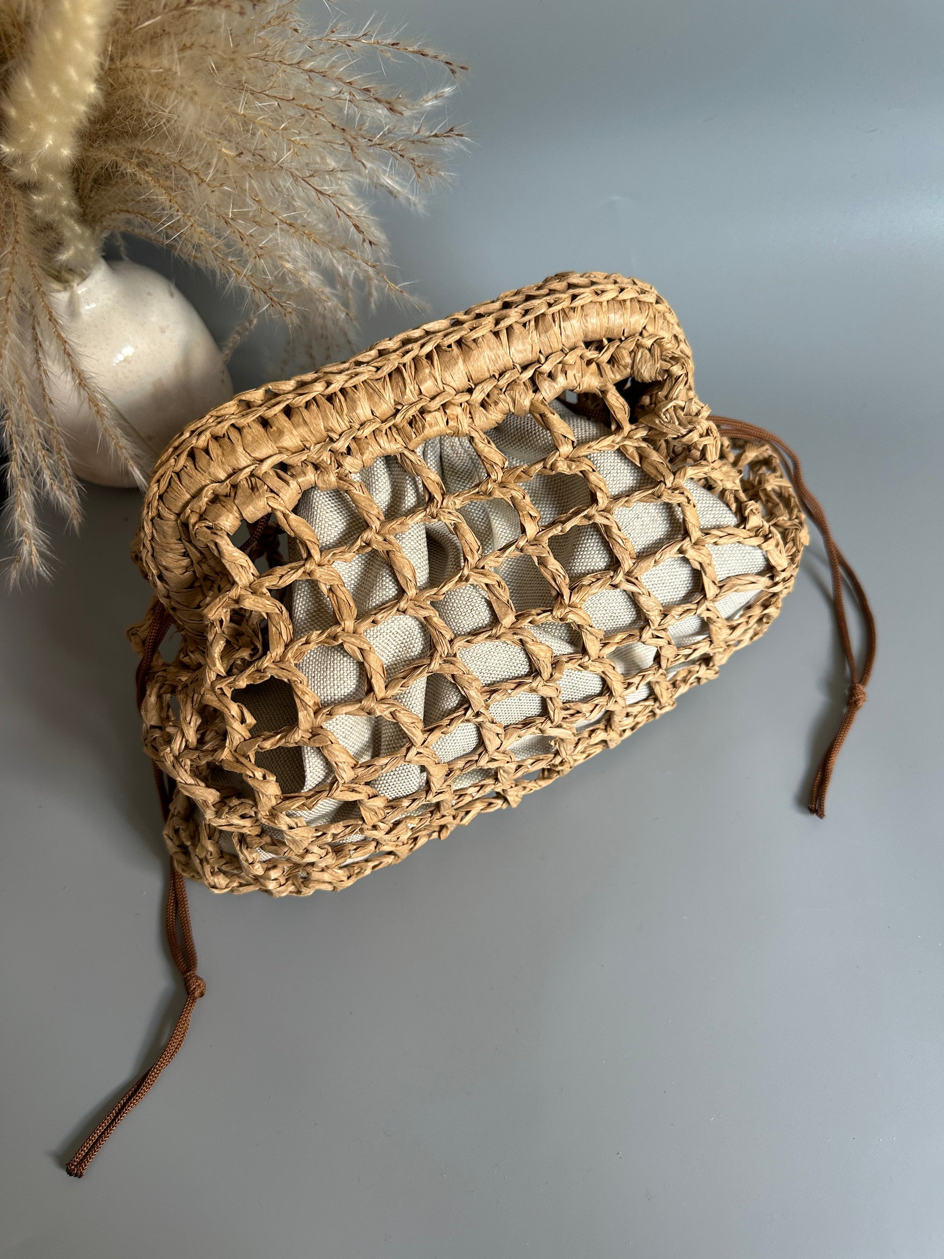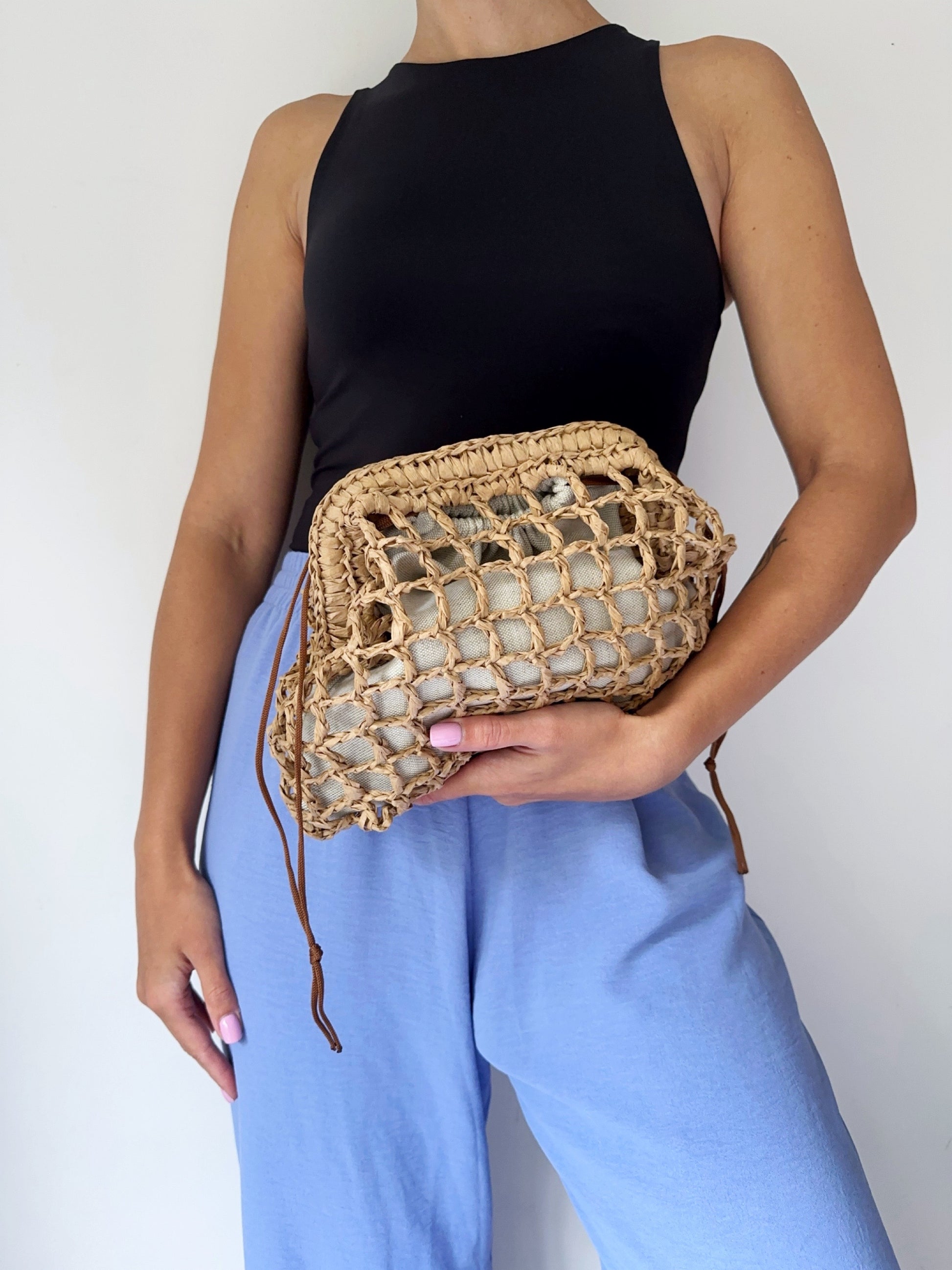 Clutch mesh raffia natural