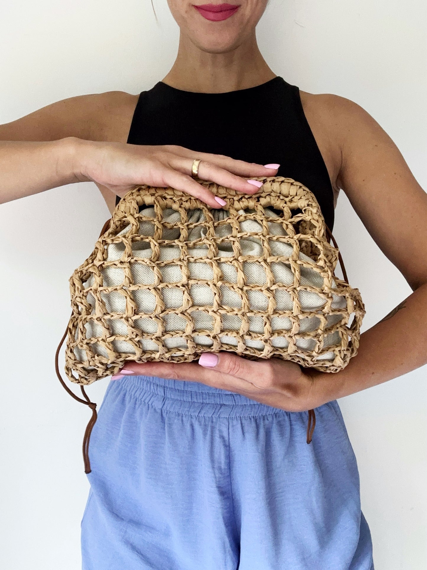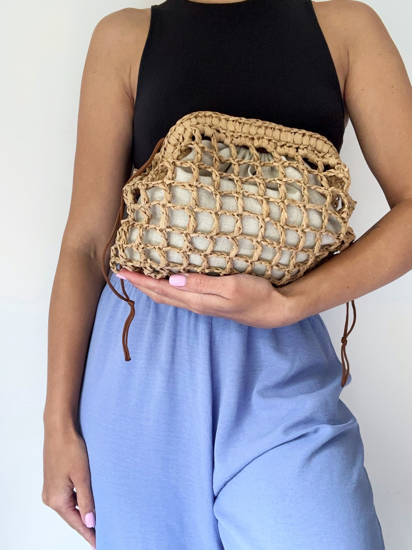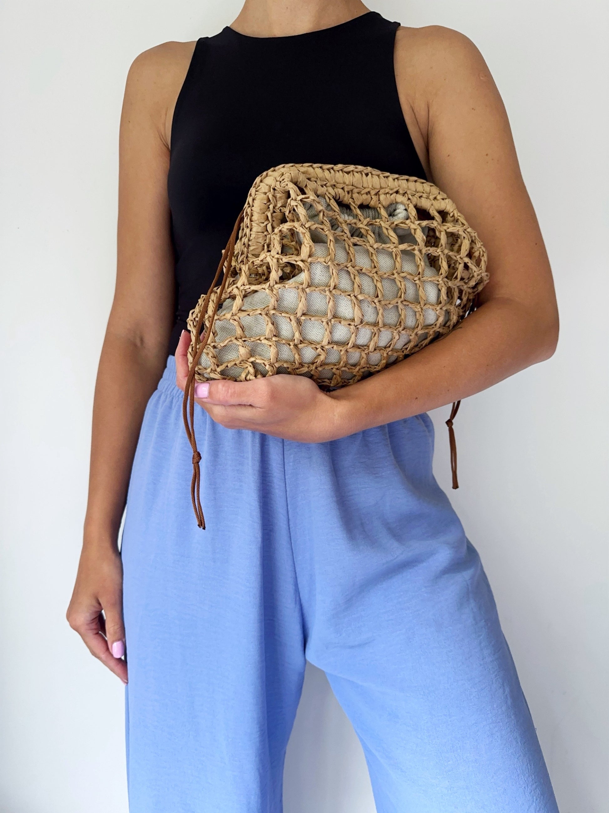 Clutch mesh raffia natural