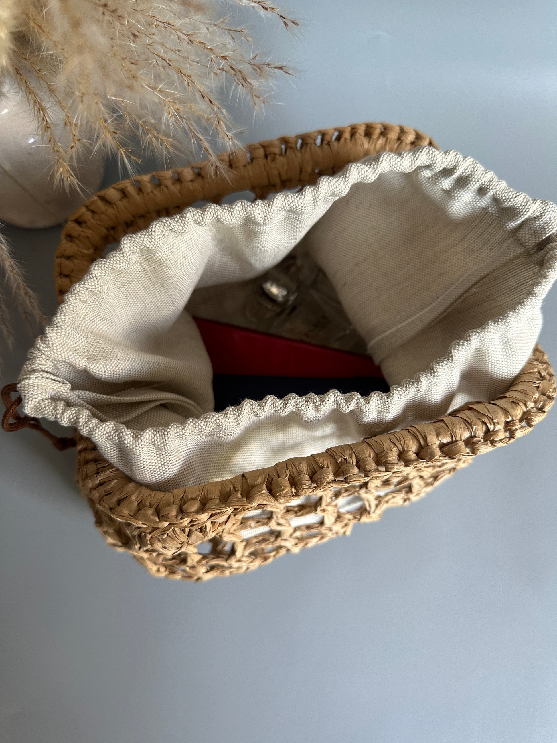 This handcrafted clutch bag is made from natural raffia using a crochet technique, offering a stylish and eco-friendly accessory for fashion-forward women. Its elegant design and lightweight feel make it perfect for any occasion, from casual outings to formal events. Additional natural linen interior.