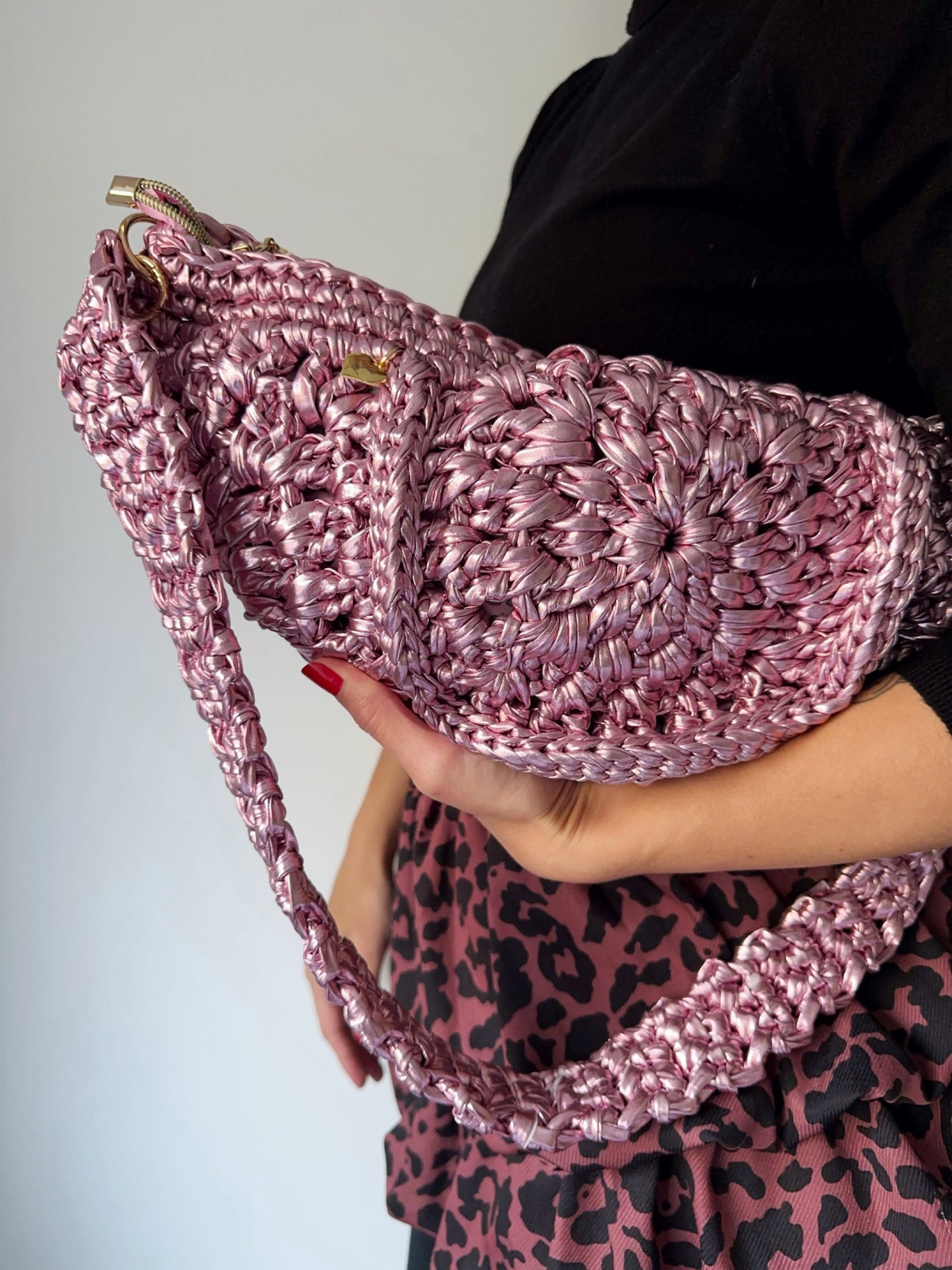 Discover our stylish handbag featuring a handcrafted square pattern, designed for shoulder wear and secured with a zipper closure. This unique accessory blends artistry with functionality, making it the perfect addition to any wardrobe.