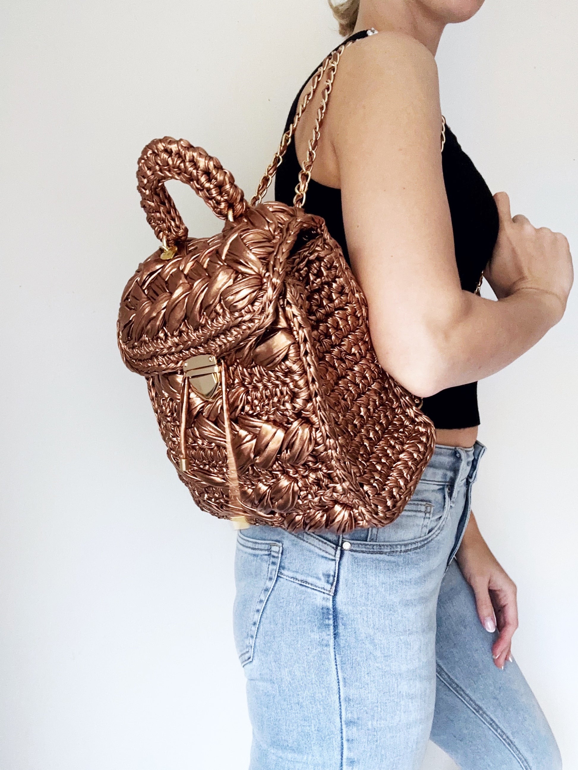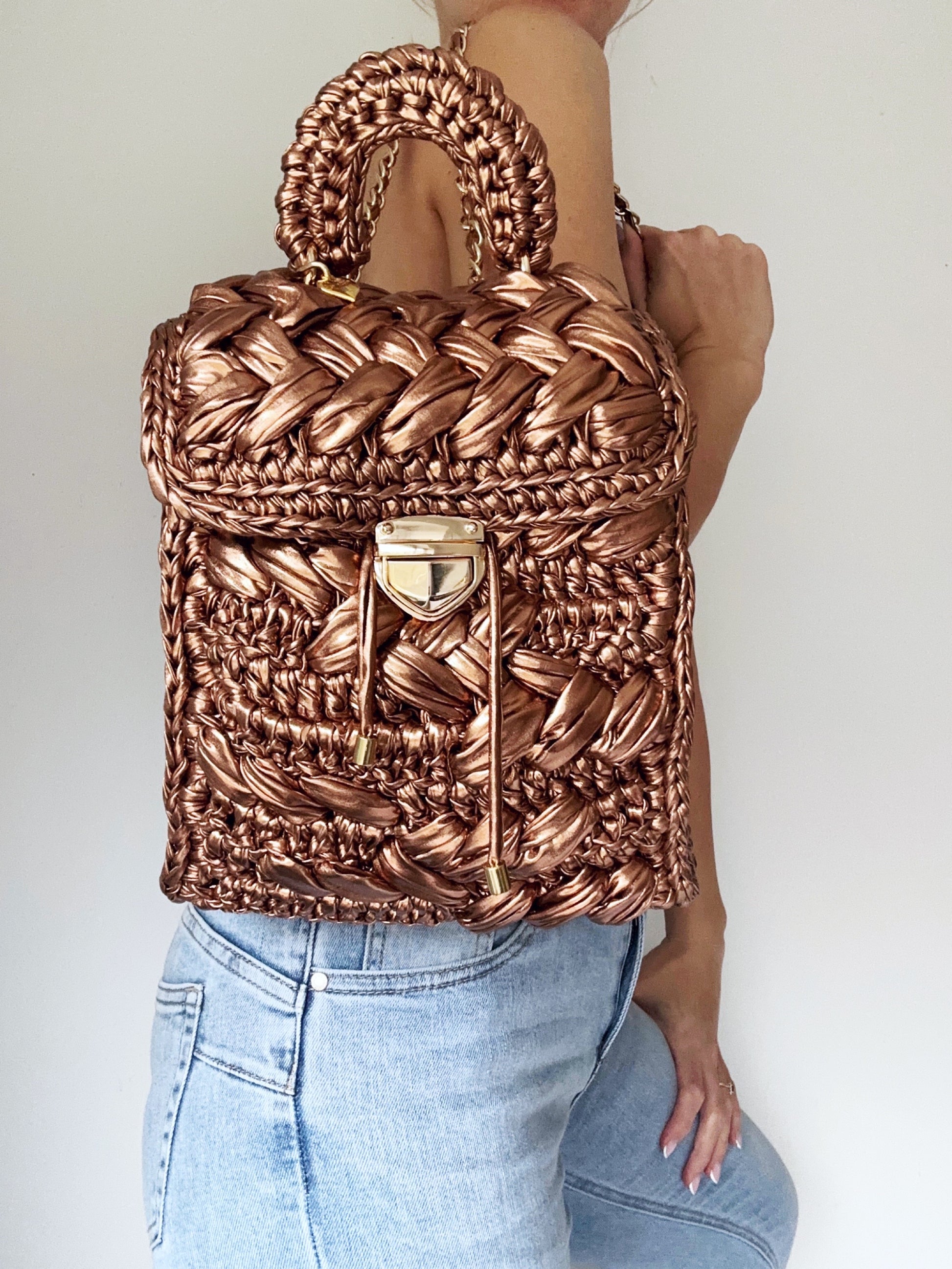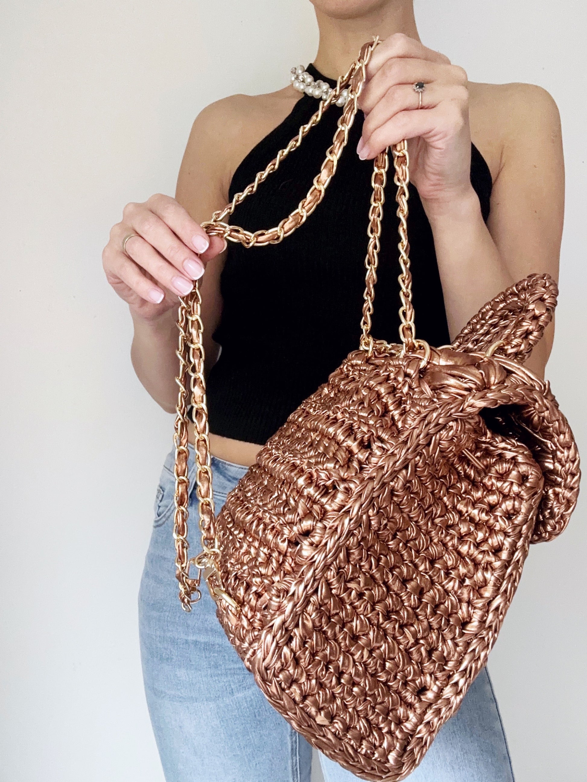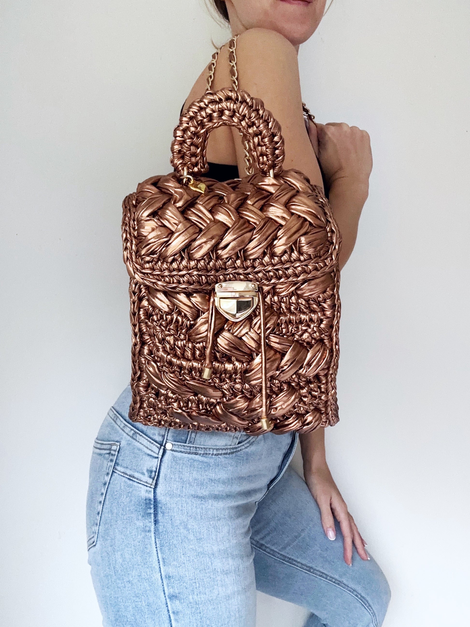 Made by Metallic Premium Yarn look leather (polyester 100%).