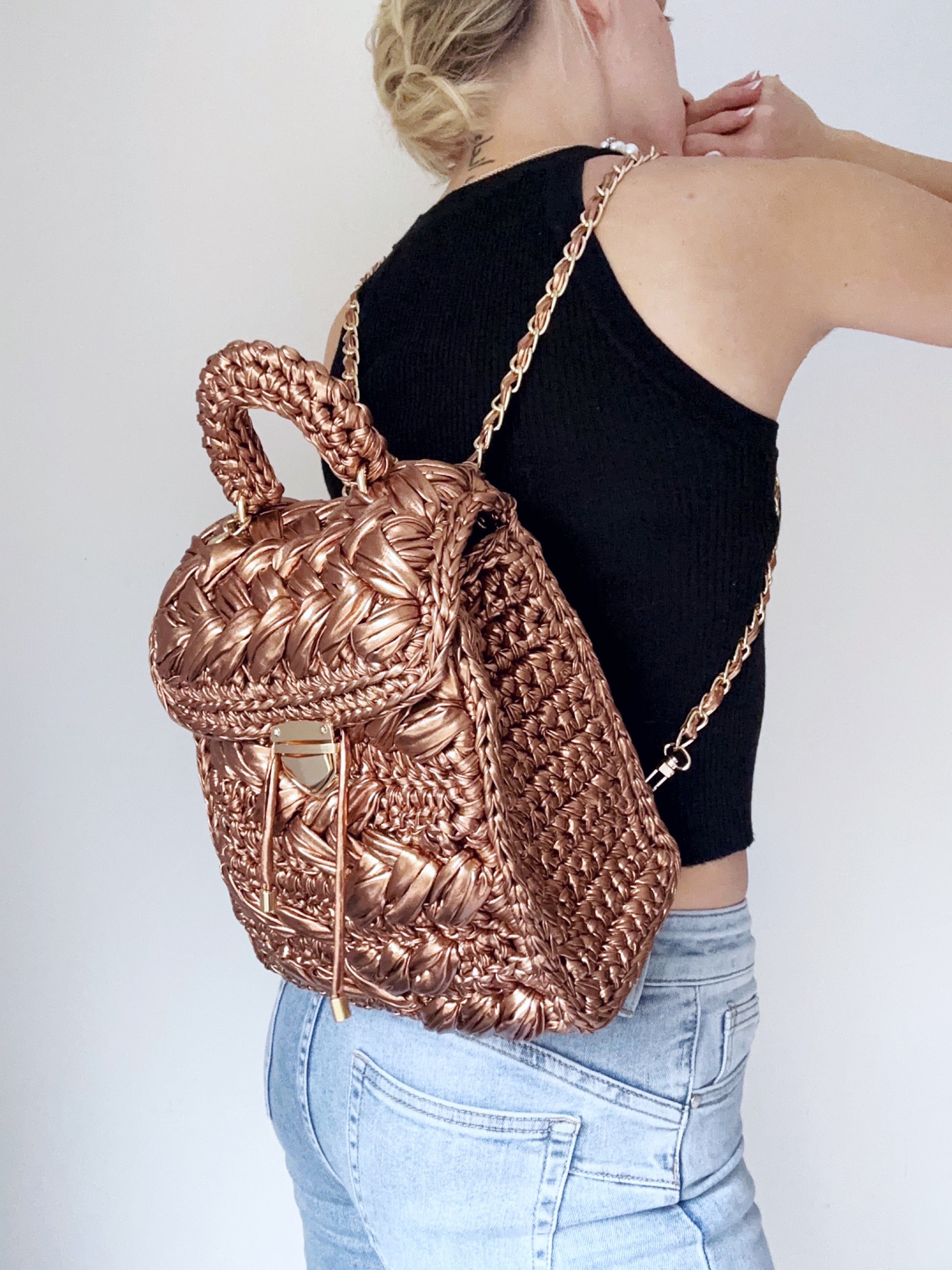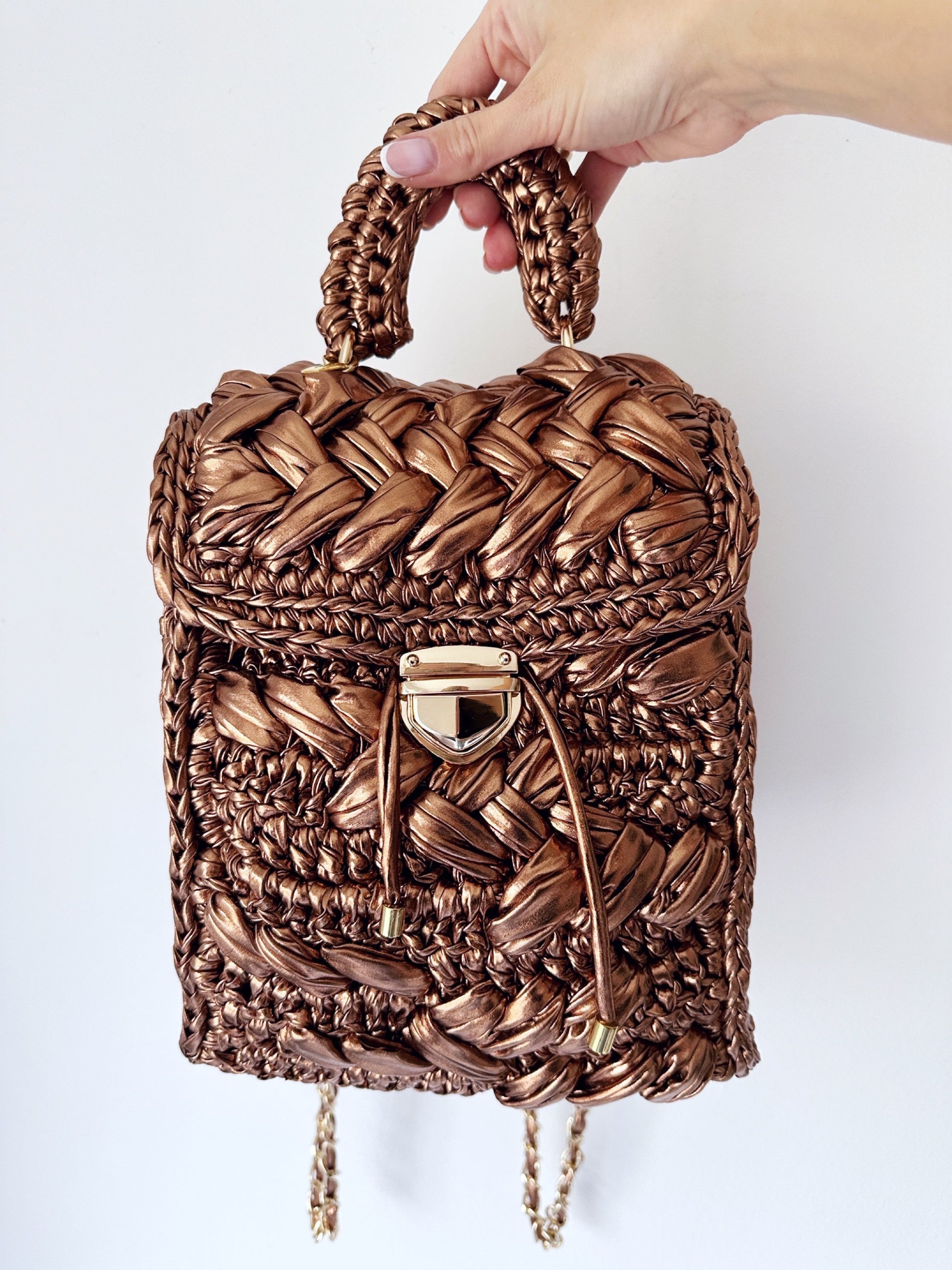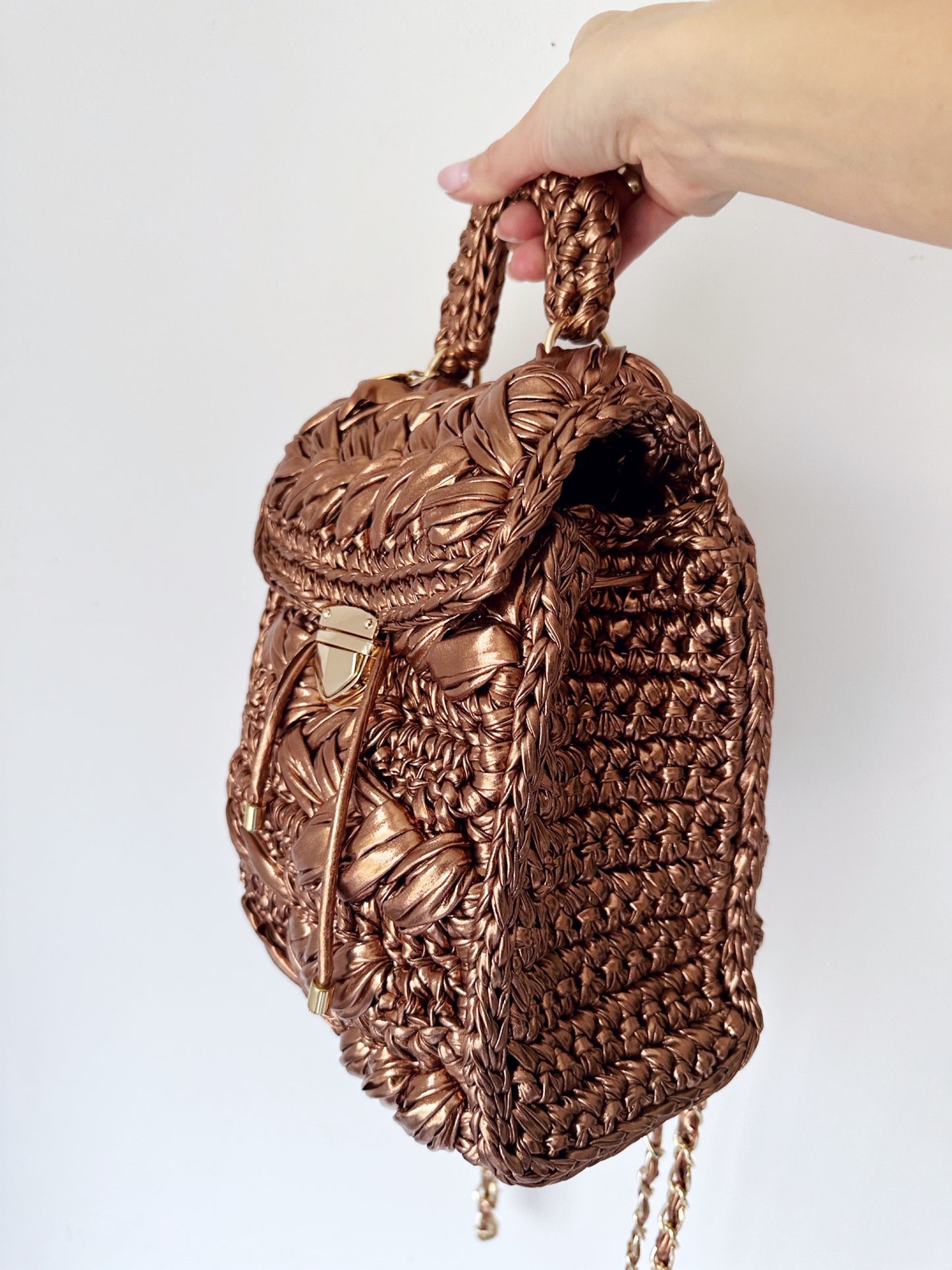 Made by Metallic Premium Yarn look leather (polyester 100%).