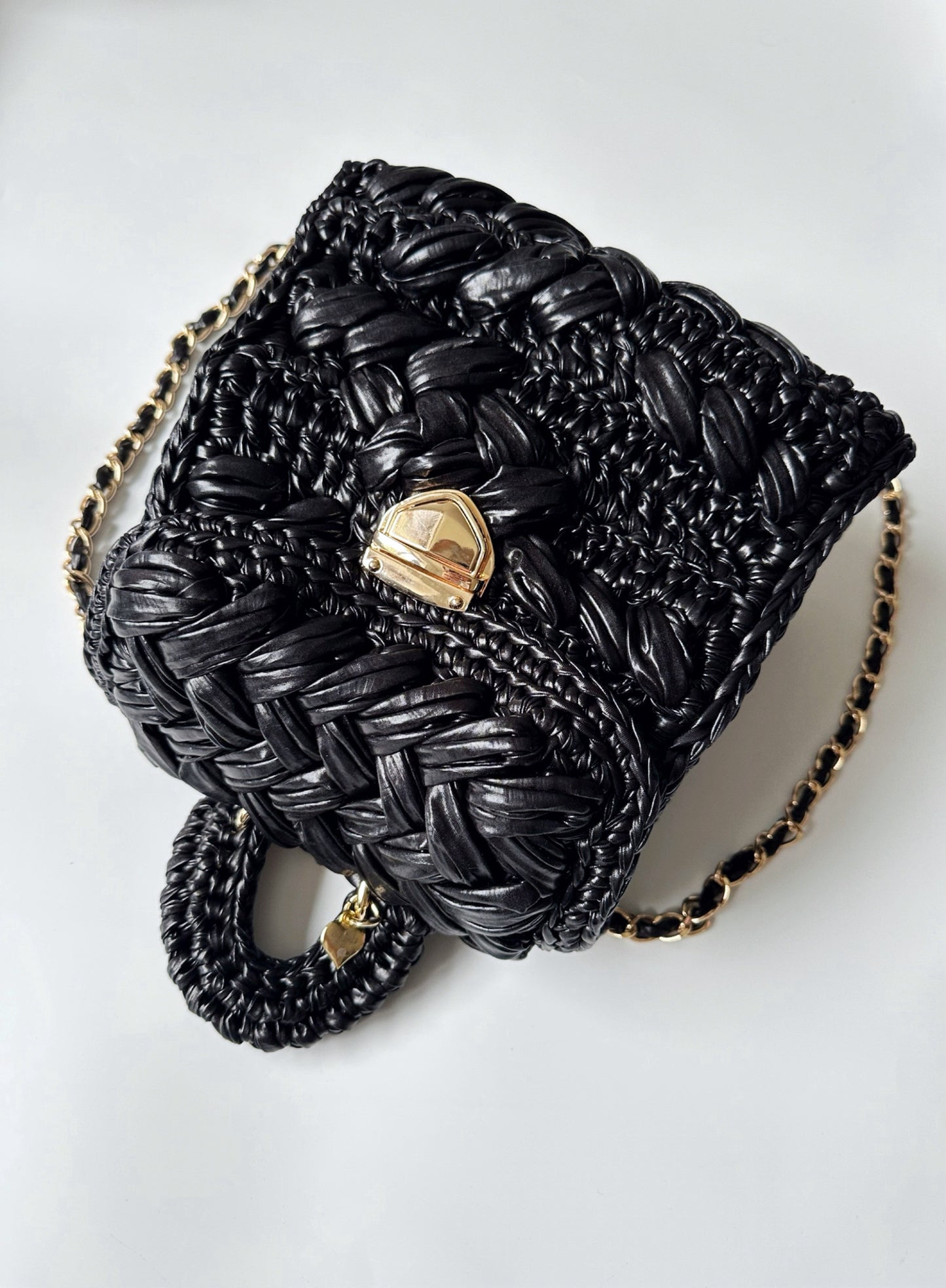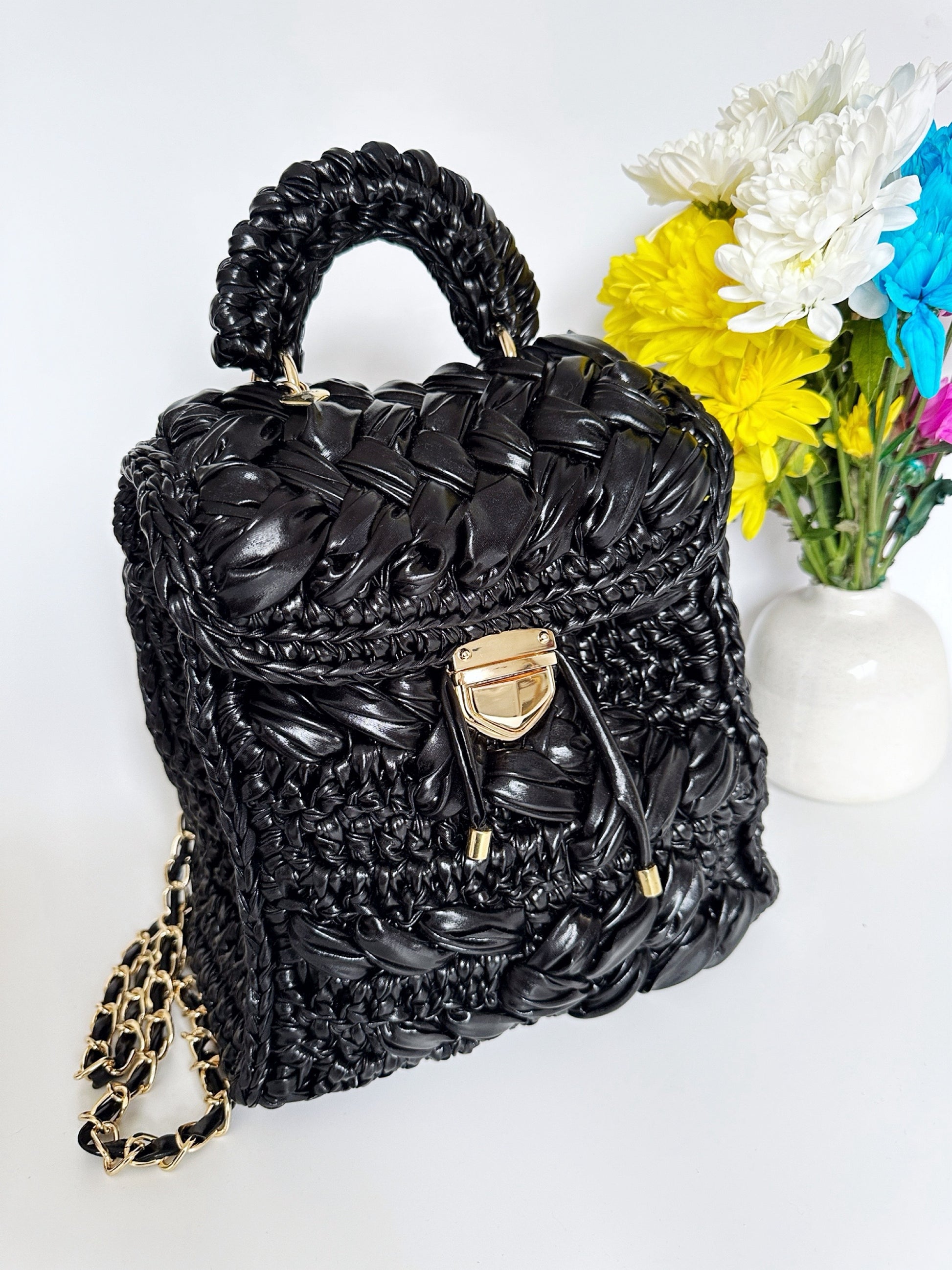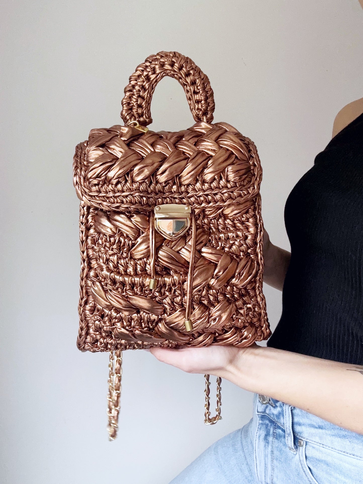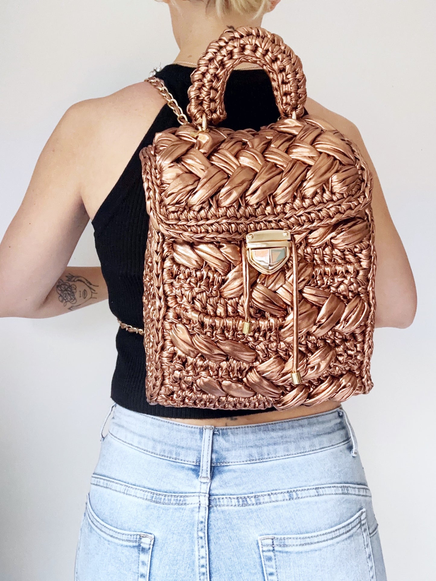 Made by Metallic Premium Yarn look leather (polyester 100%).