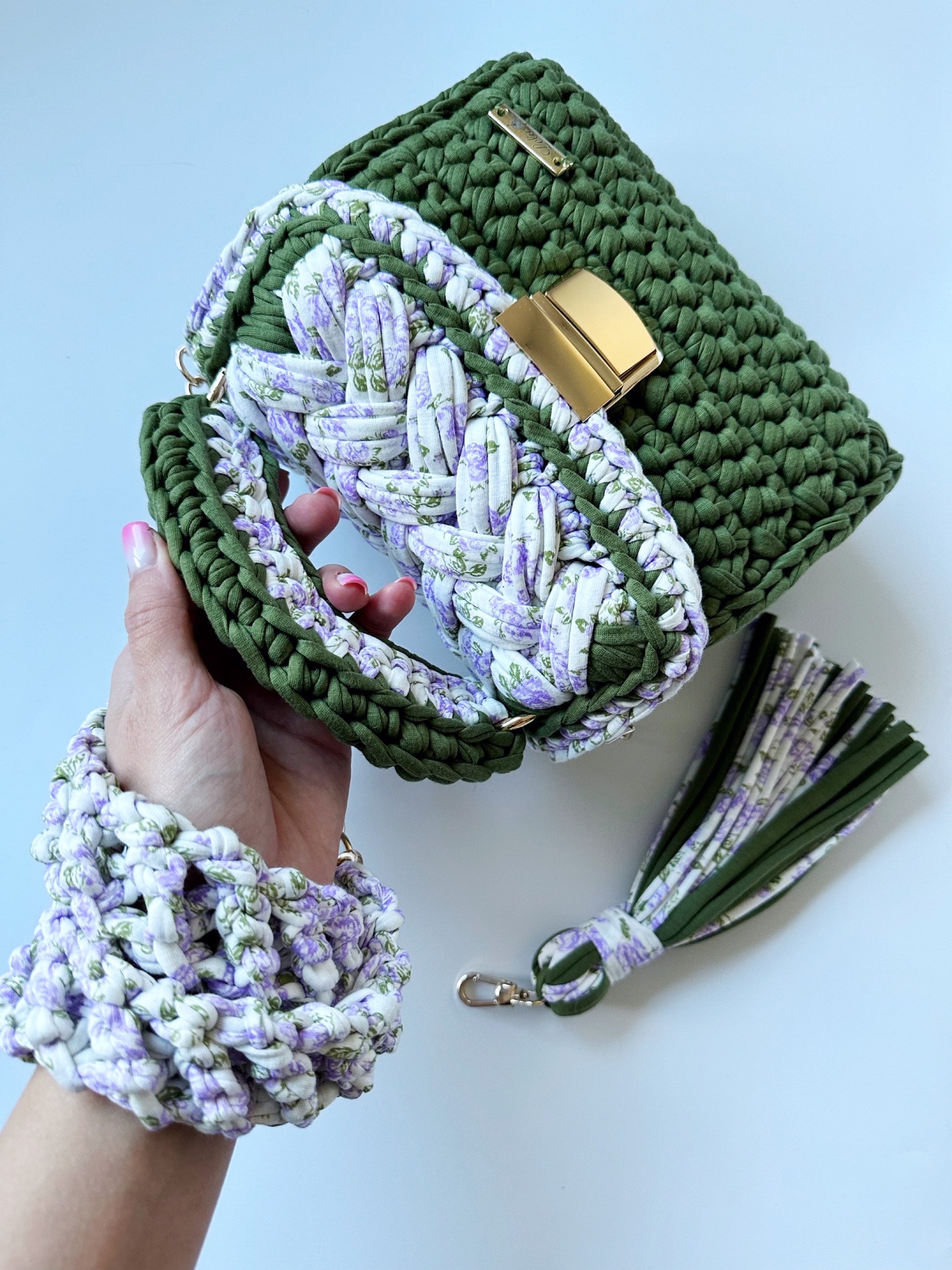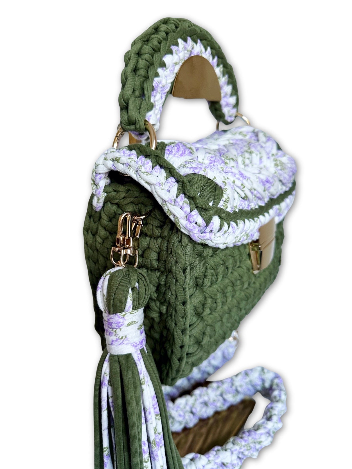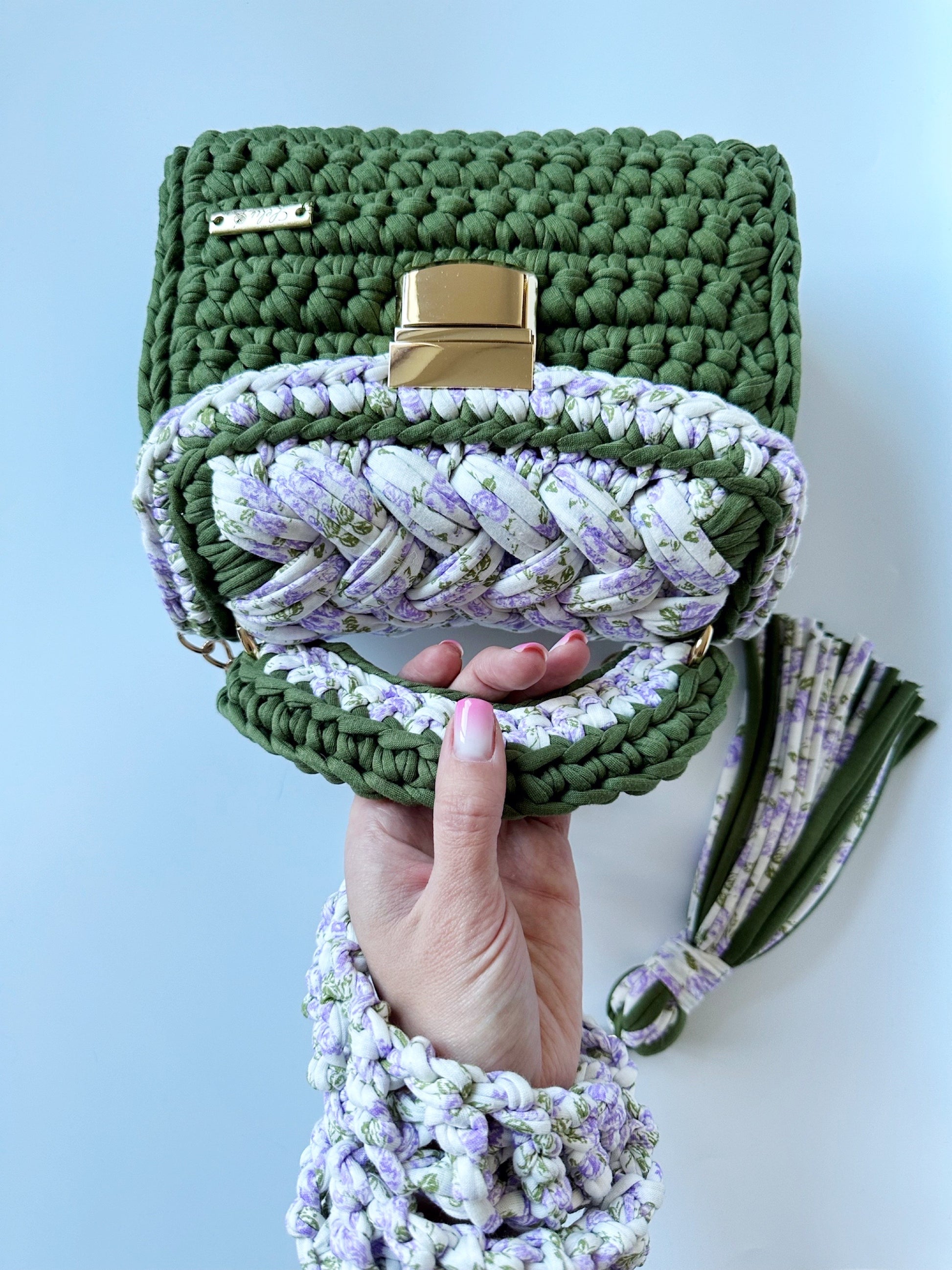 The timeless elegance intertwines with modern grace in this unique crocheted handbag, crafted for the woman of exceptional style. Handmade with meticulous care and precision, each nuance of the pattern is intricately woven with attention to detail, creating subtle yet striking compositions. Soft hues, intricate embellishments, and refined finishes give this handbag an unparalleled charm and timeless sophistication. It is not just a practical addition to everyday ensembles but also an expression of individuality and taste that speaks to the heart of a woman who appreciates beauty in every detail.