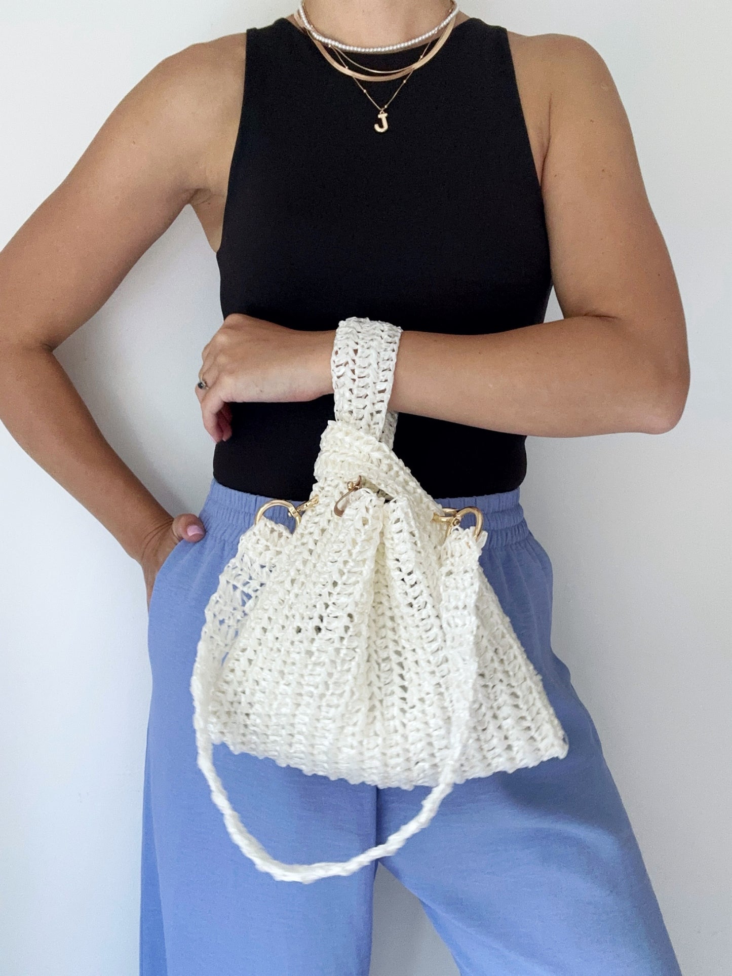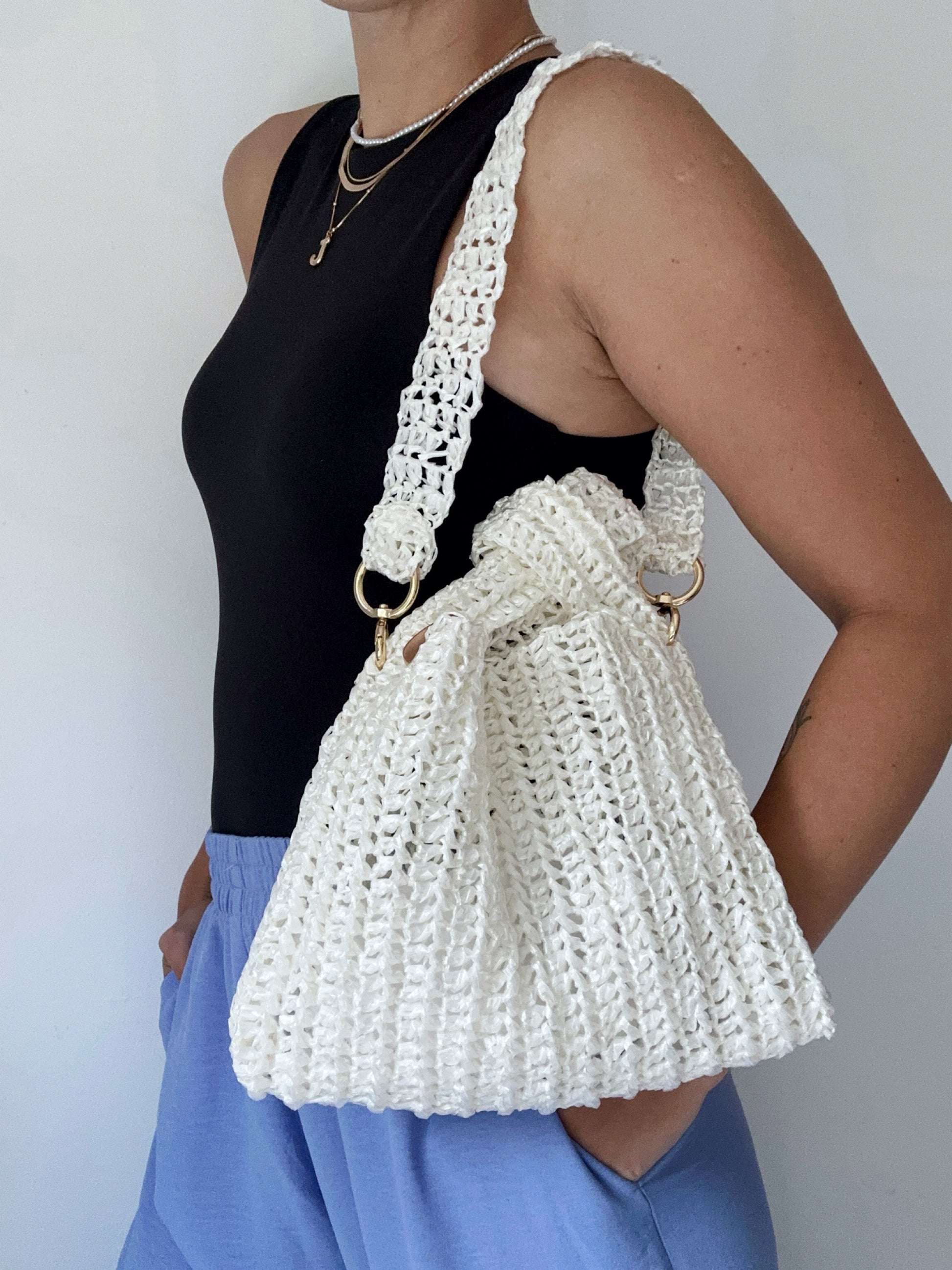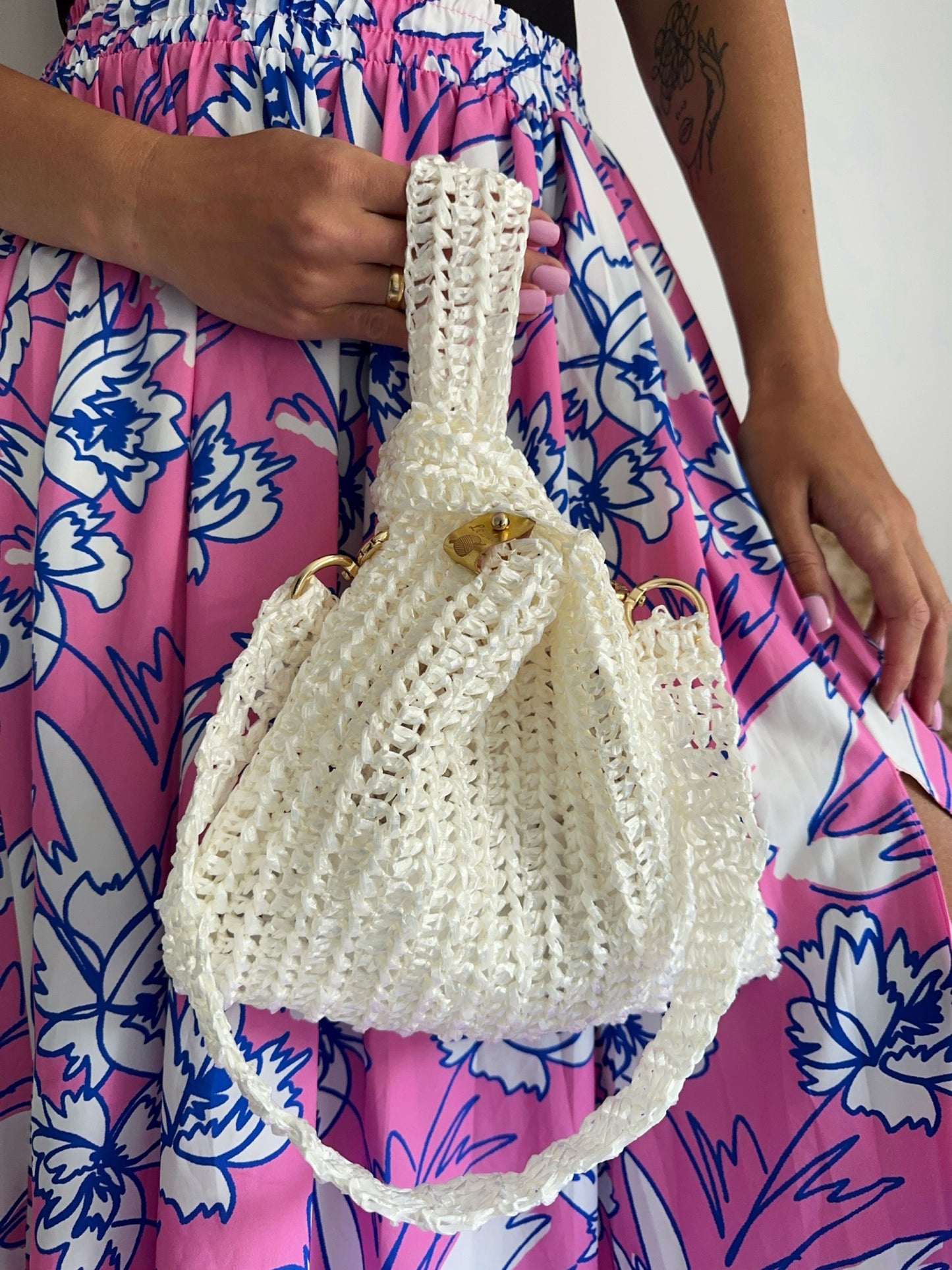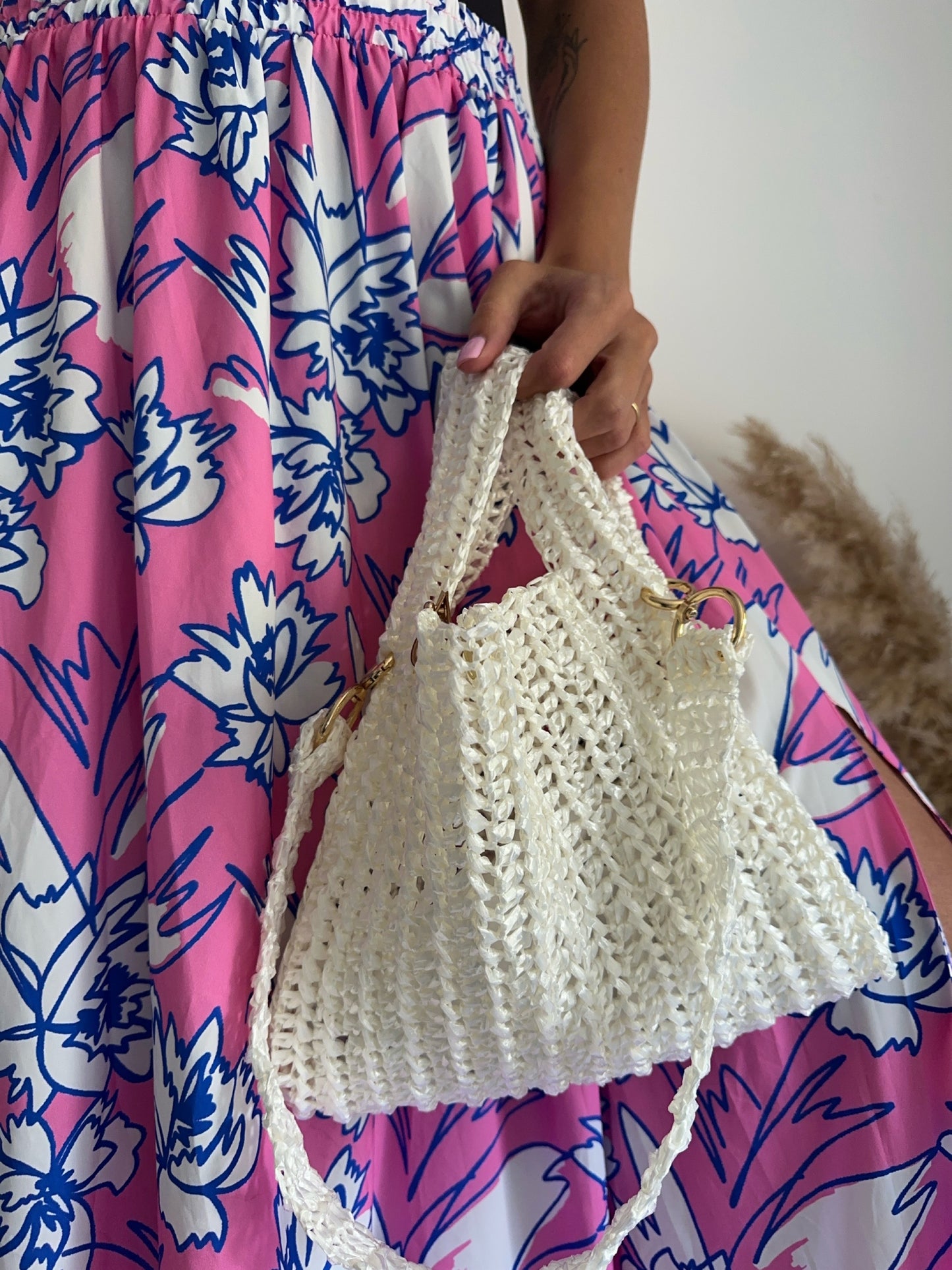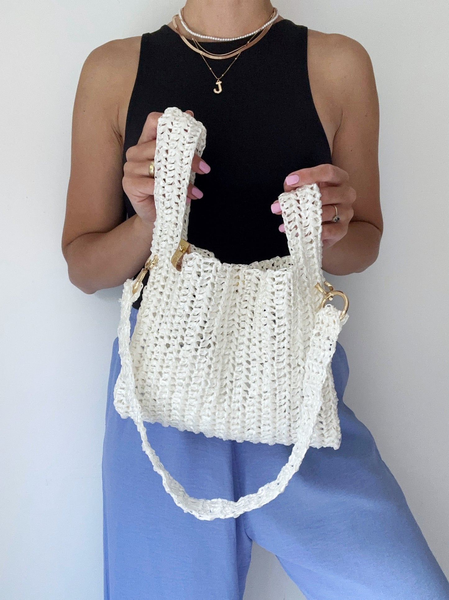 This handmade bag exudes a unique summer vibe with its shine white color and artisanal touch. It's perfect for adding a pop of personality to any outfit this season. A shine white handbag, designed for women who value both nature and aesthetics, combines eco-friendly materials with elegant, minimalist design. Additional detachable strap 70cm.