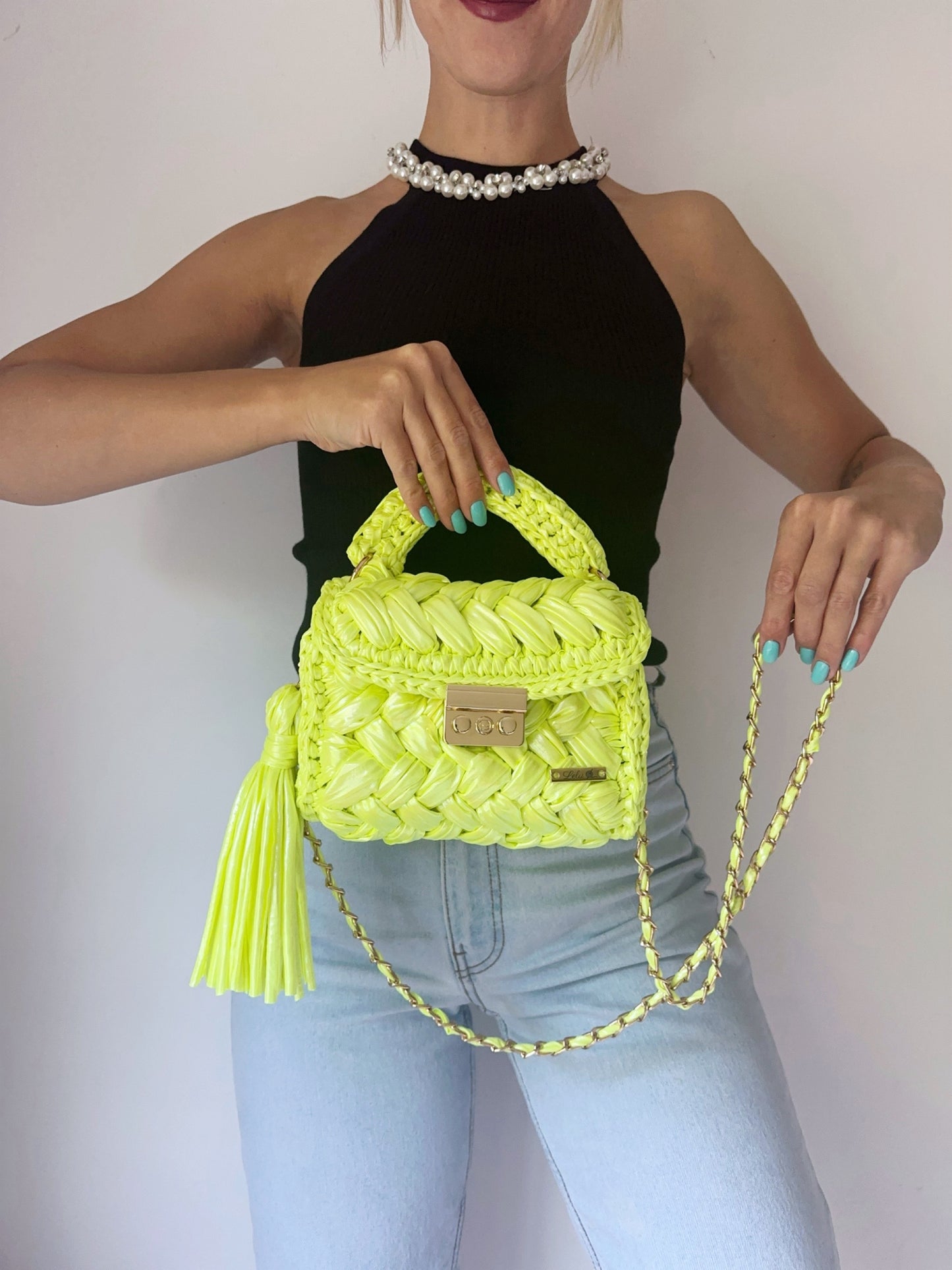 Handcrafted in a stunning neon lime, this unique summer bag is a true eye-catcher. Its vibrant color and meticulous craftsmanship make it a standout accessory, perfect for adding a pop of color to any outfit. Ideal for those who appreciate unique and bold fashion statements, this bag is sure to attract attention and compliments wherever you go.