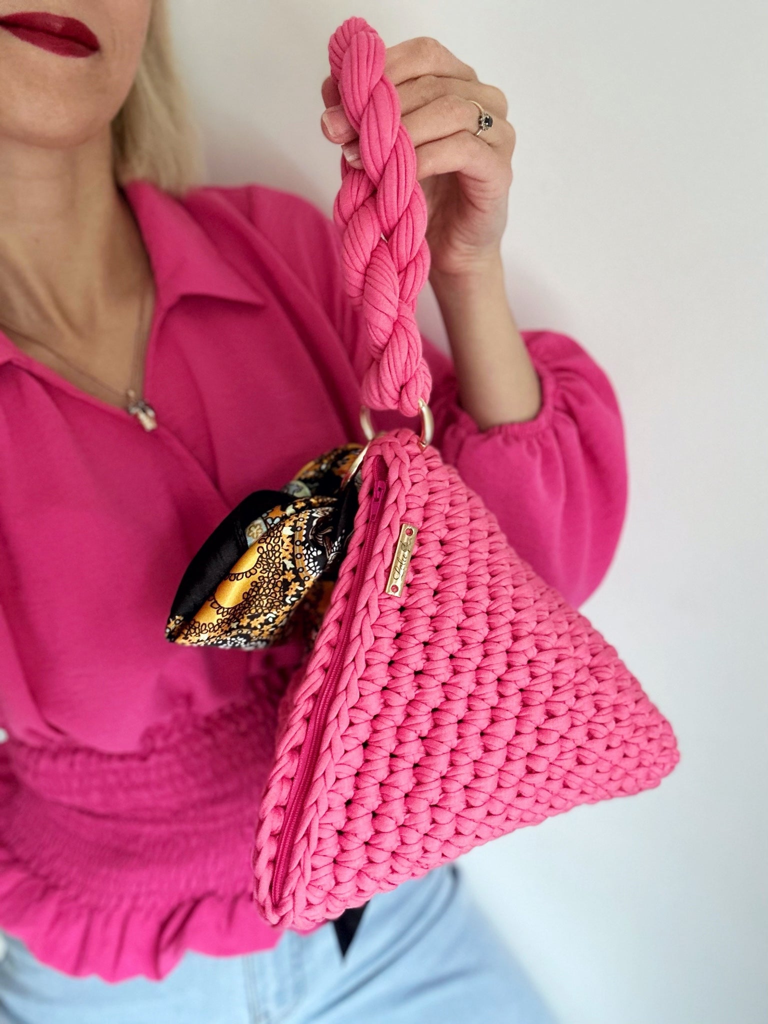 Discover the uniqueness and style of our triangle-shaped bag, meticulously handcrafted with passion and attention to detail. This exceptional bag, made from crochet, combines modern design with classic craftsmanship. Its geometric shape catches the eye and adds character to any outfit.