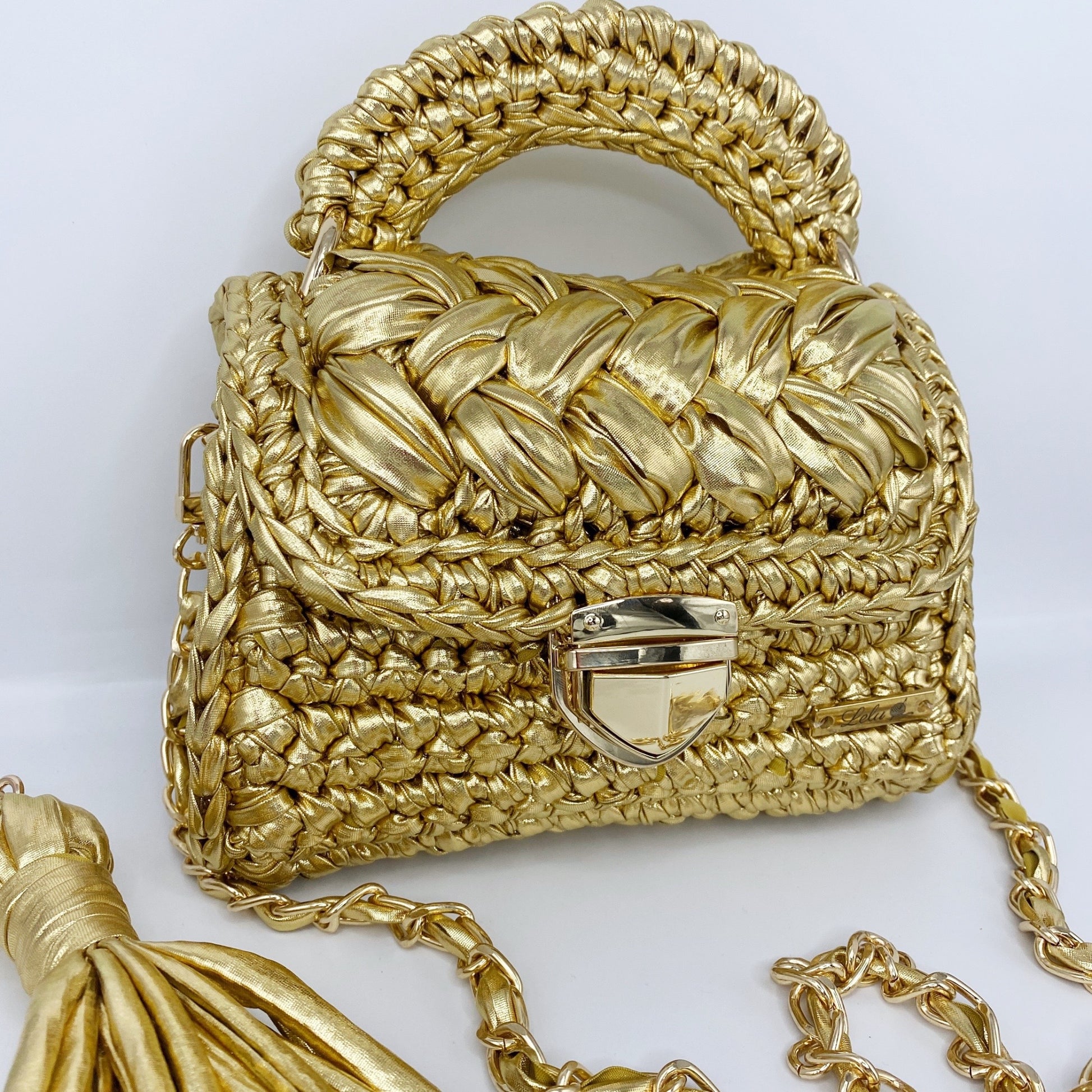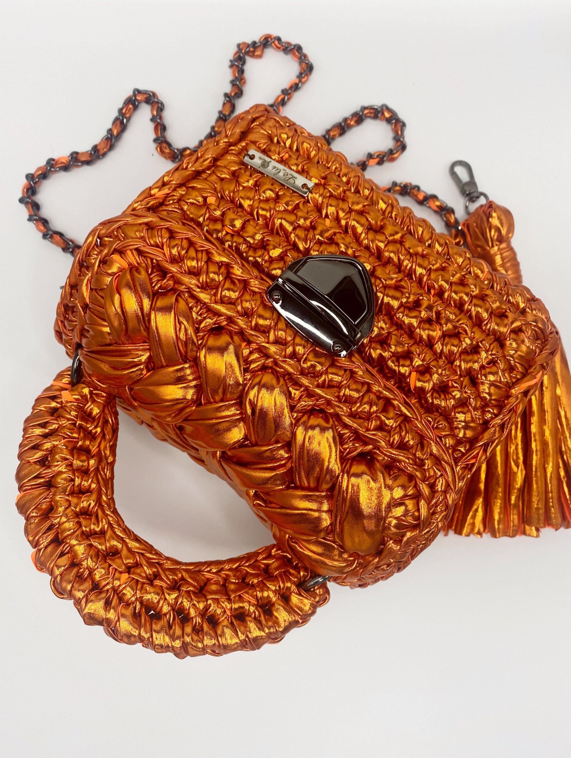 Introducing our handcrafted handbag, made from a stylish shimmering material that exudes elegance. This chic accessory is designed for the modern woman, adding a touch of sophistication to any outfit.