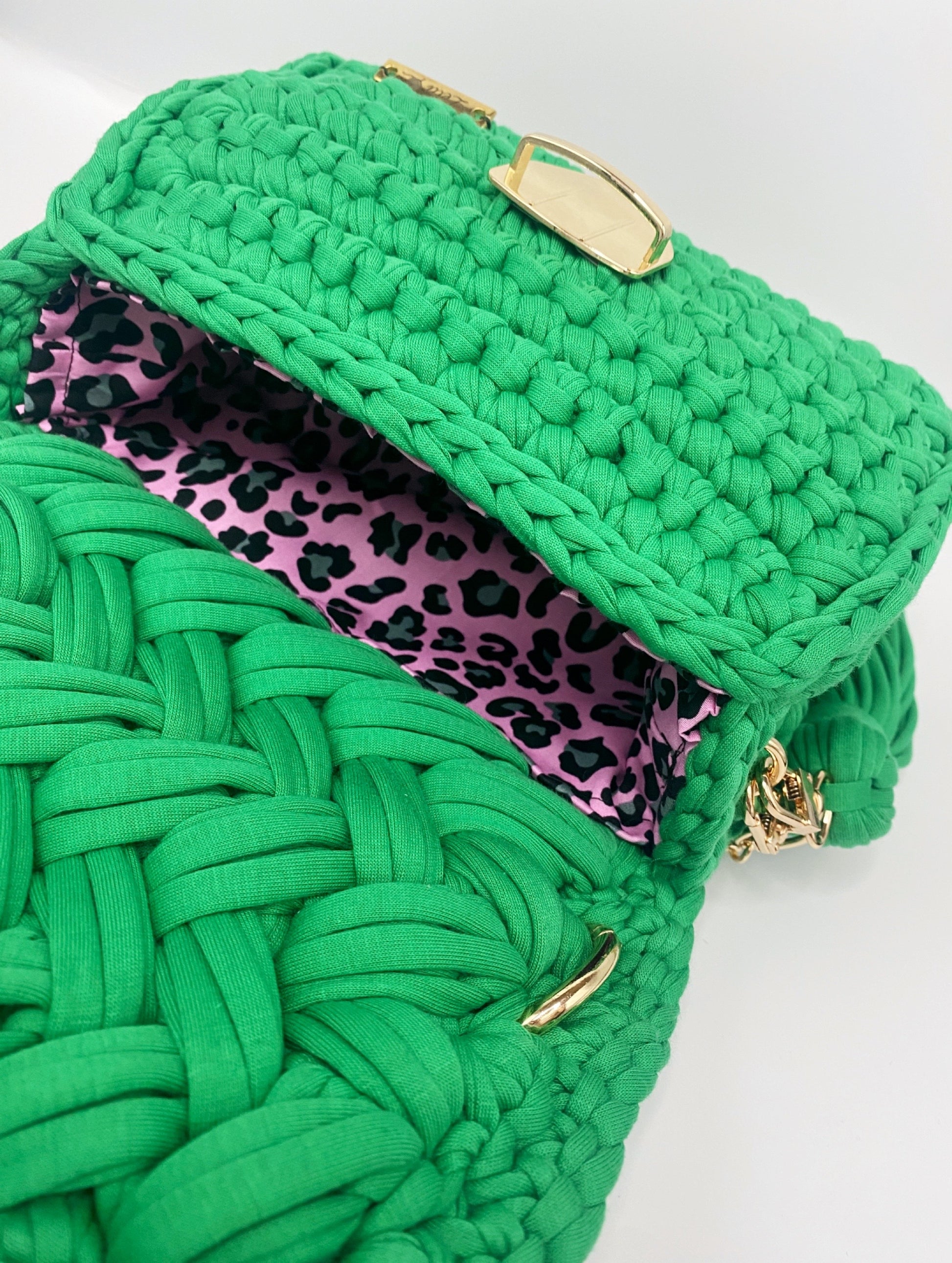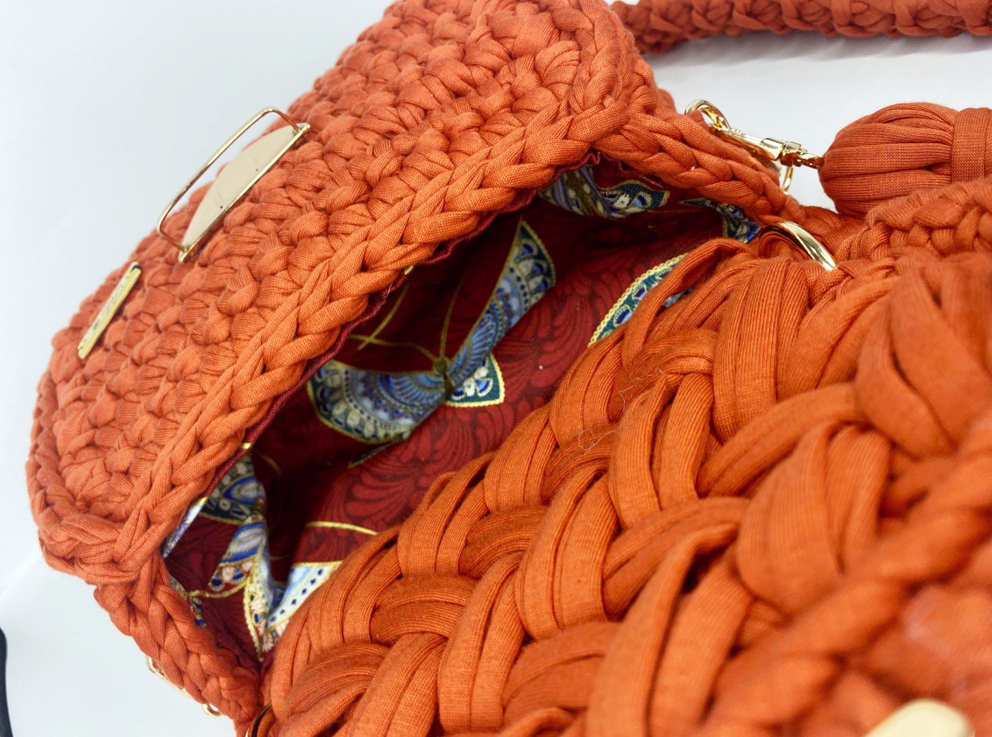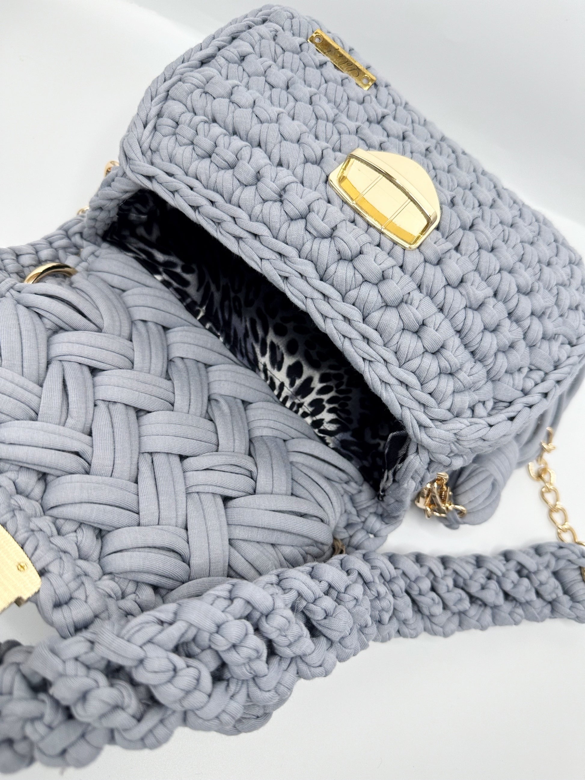 The interior of the bag is lined with elegant fabric, providing durability and protection.