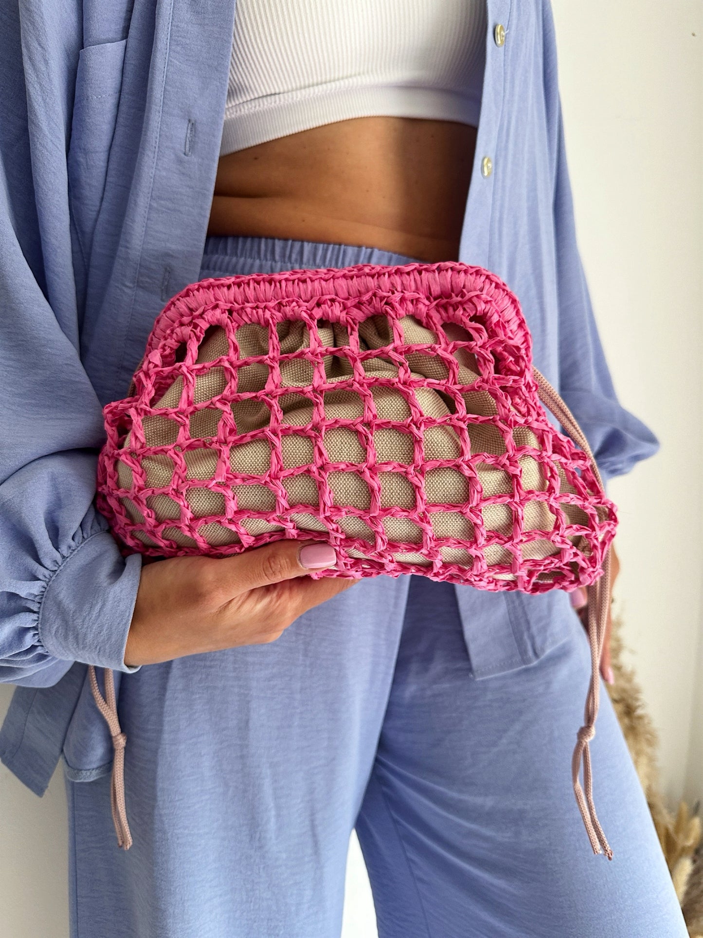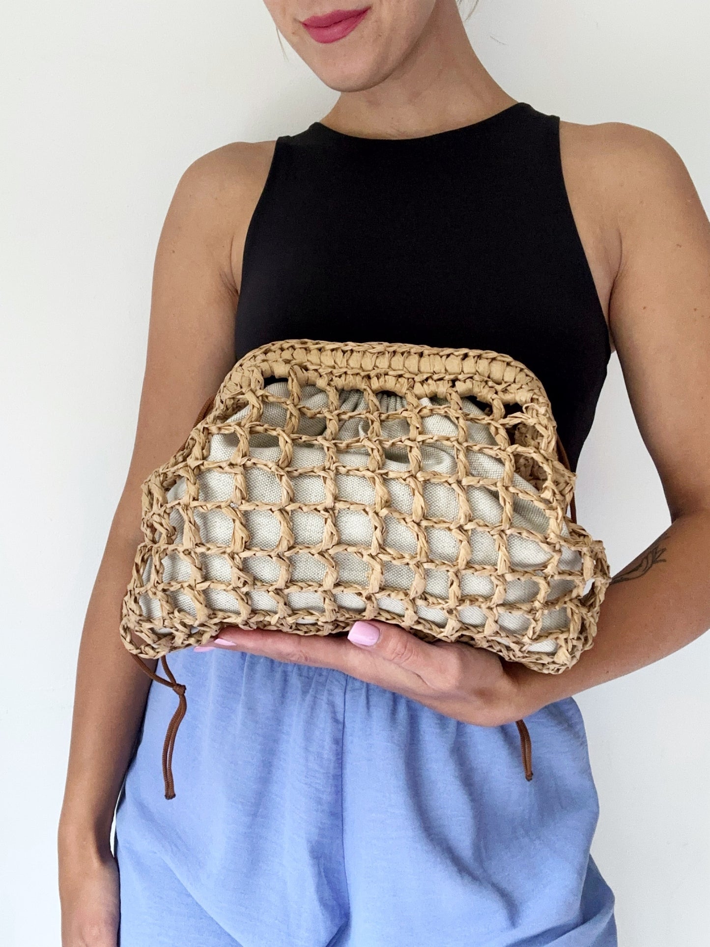 Clutch mesh raffia