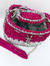 Finished with crochet bag handle, this must-have piece can be carried by the shine top handles or worn cross-body using the detachable chain strap.