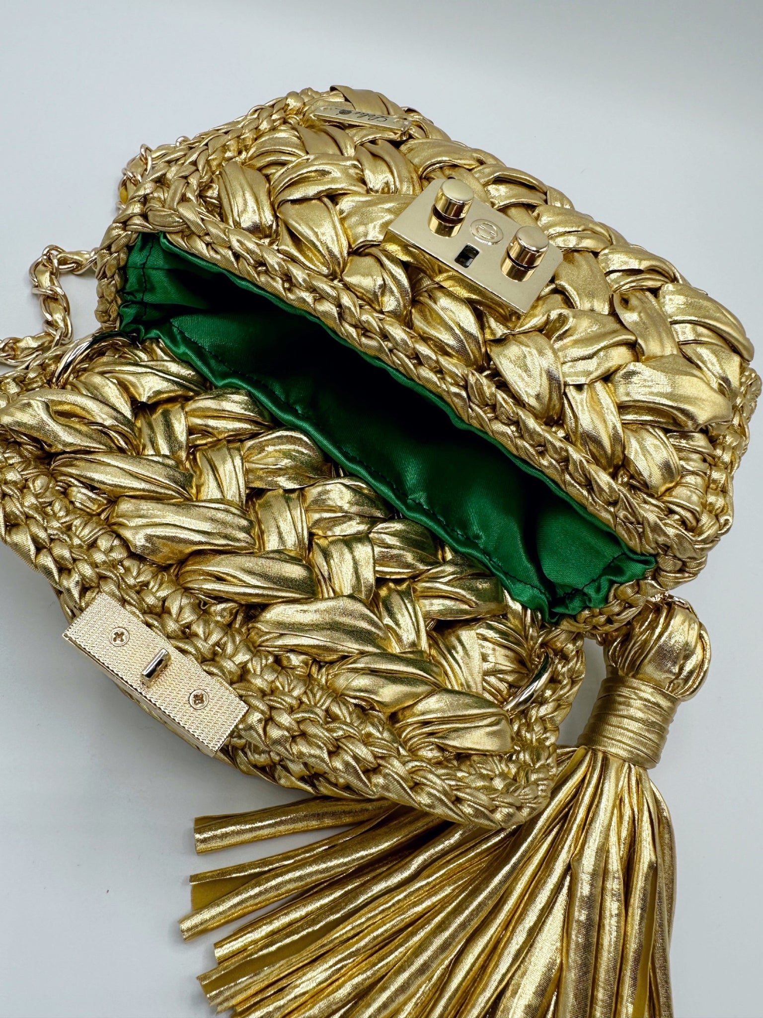 Model "SHINE gold - fittings gold" with all metallic yarn. This bag will dazzle you with its glow. Shine will complement any styling and you will be proud that you have something unique. Perfect for any celebrations. A unique bag for a stylish woman.