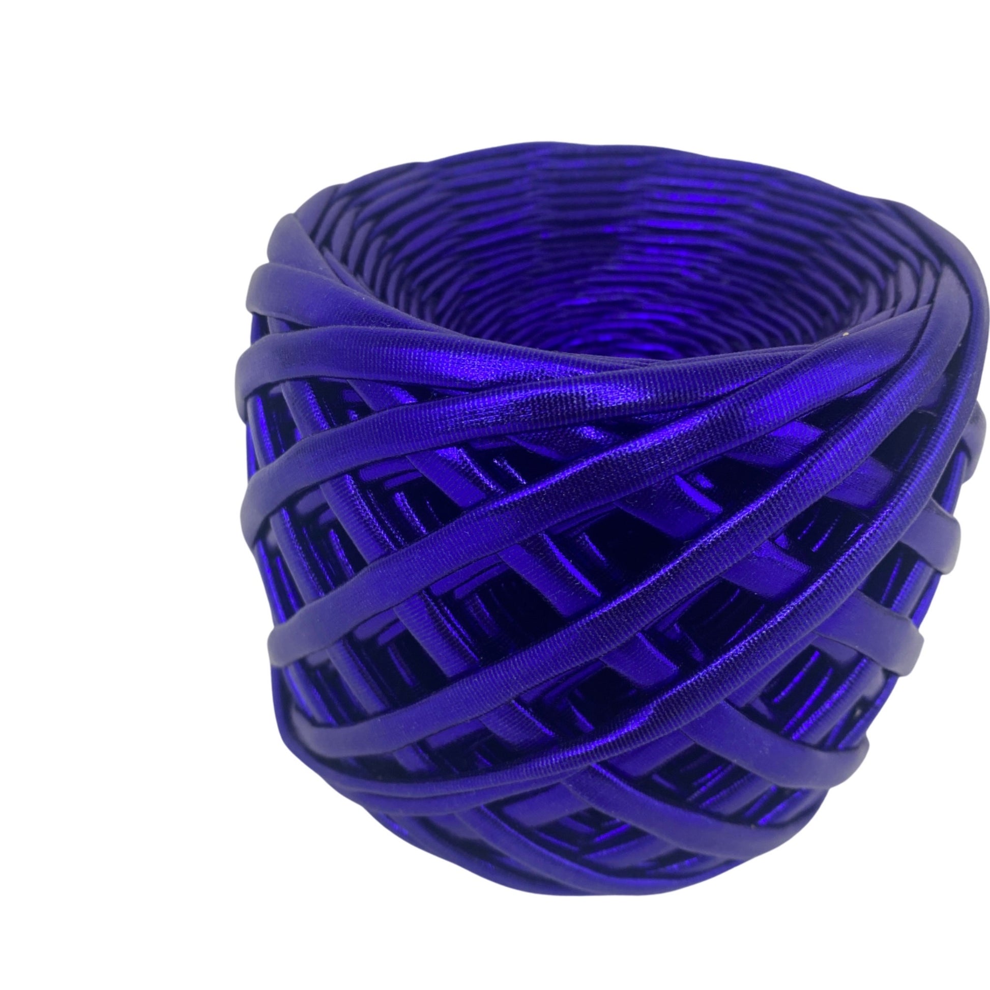 Metallic tshirt yarn is a quality yarn, made of 100% polyester with metal spraying. Without knots, stitches, and differences in width. LOOK LETAHER YARN
